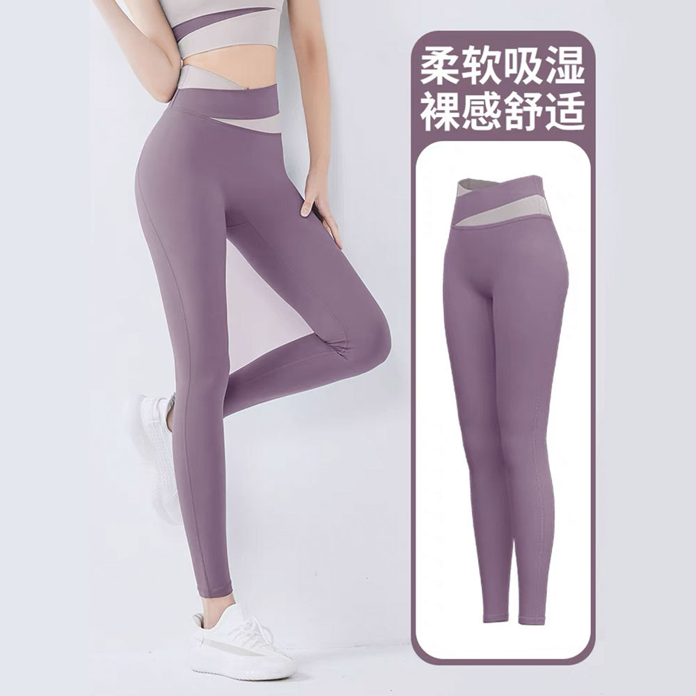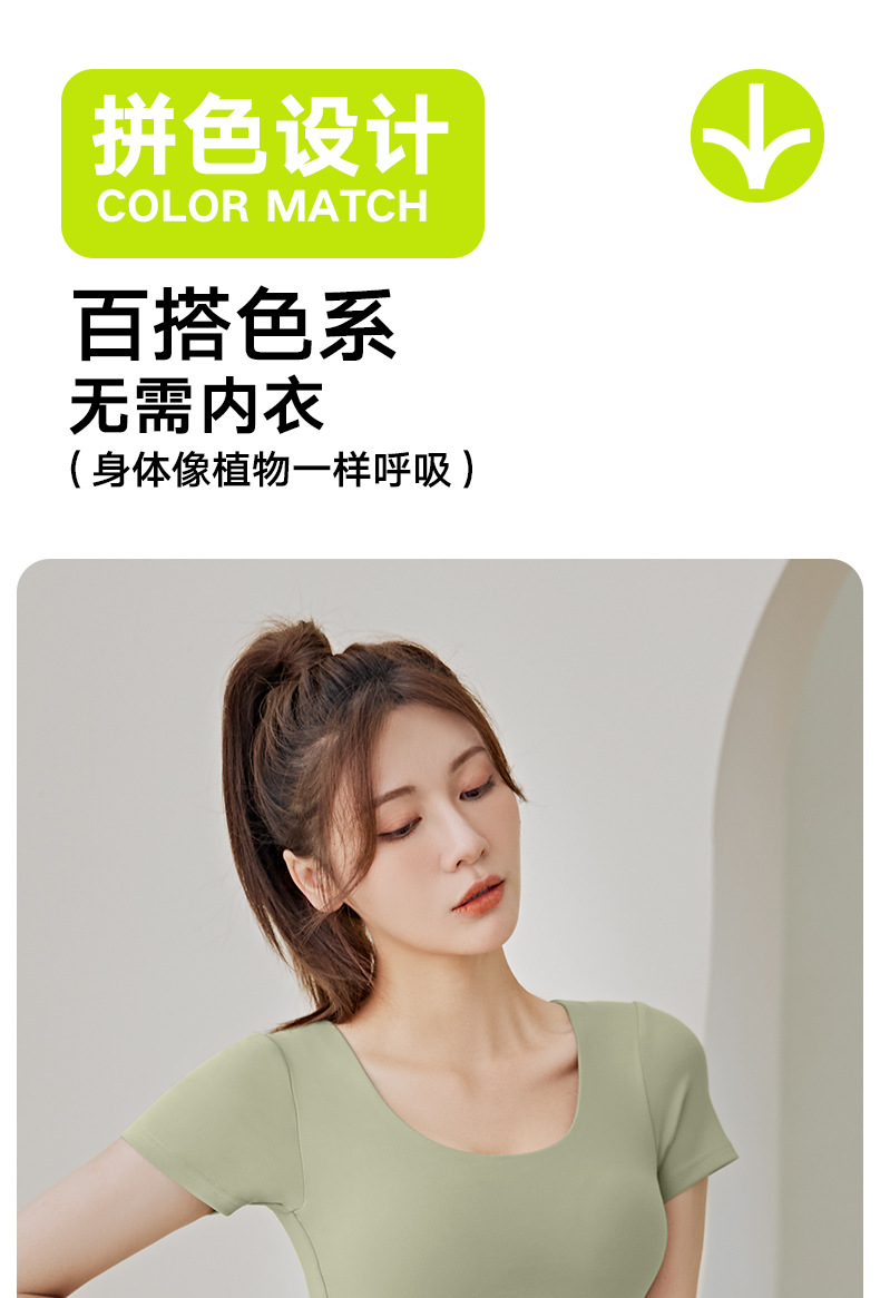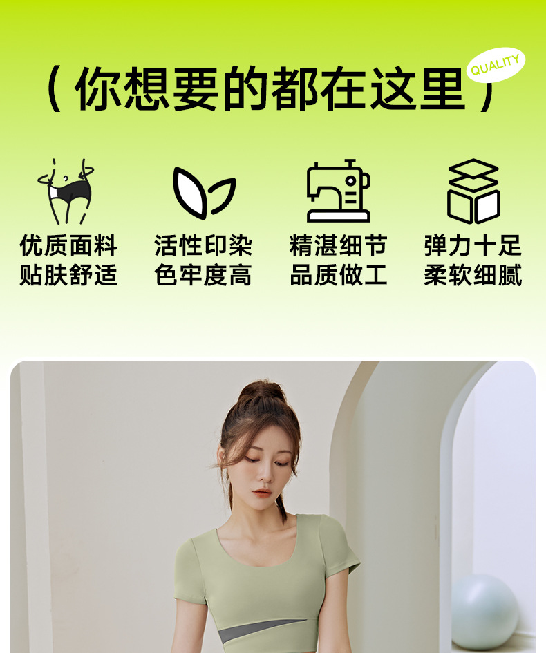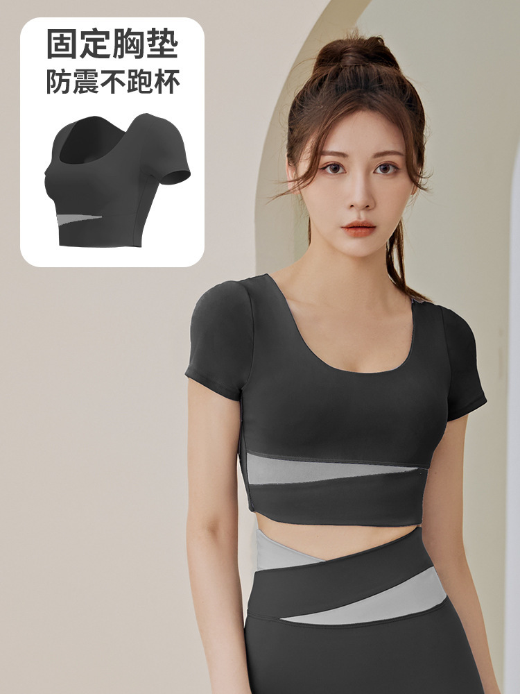 컬러 블록 반팔 요가 세트 여성의 봄과 여름 배꼽 짧은 최고 엉덩이 바지 달리기 스포츠 피트니스 세트스토어 가기