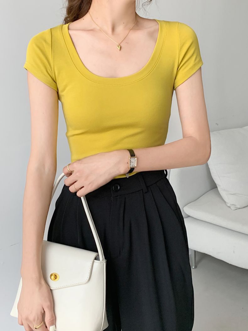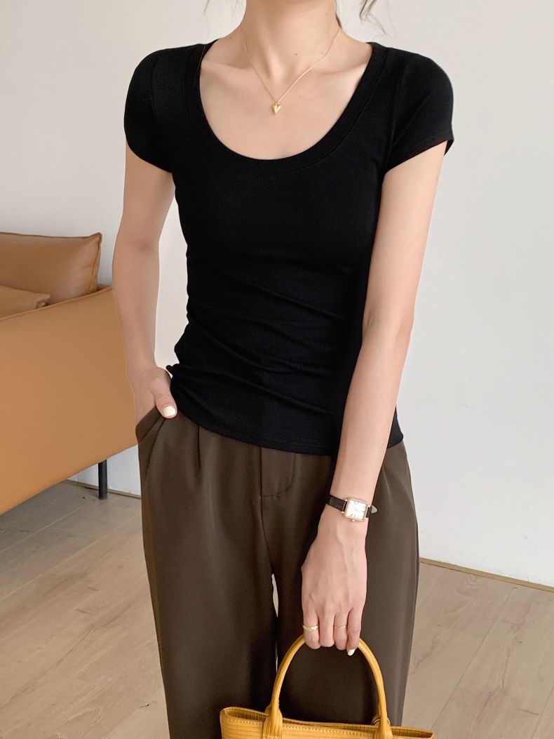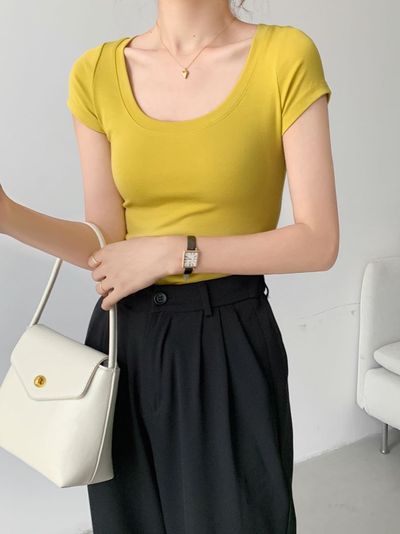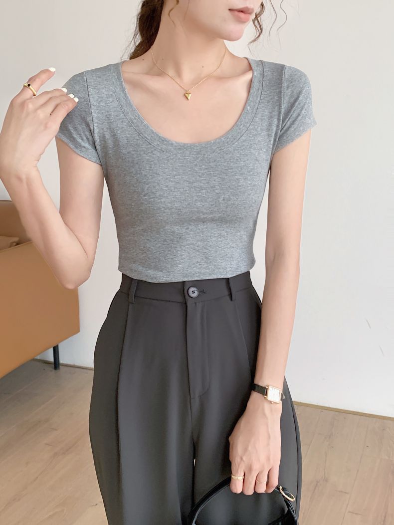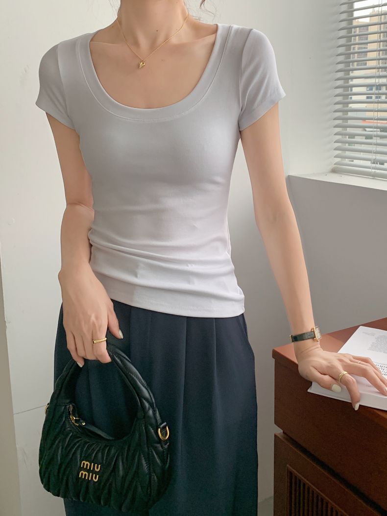 고품질 순수 코튼 티셔츠 여성 반팔 슬림 라운드 넥 섹시 타이트 2025 뉴 여름 탑 솔리드 컬러 바닥 셔츠스토어 가기