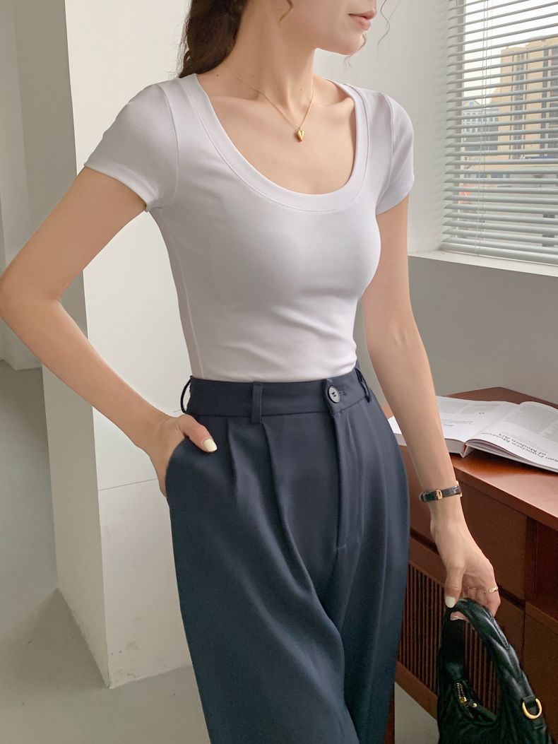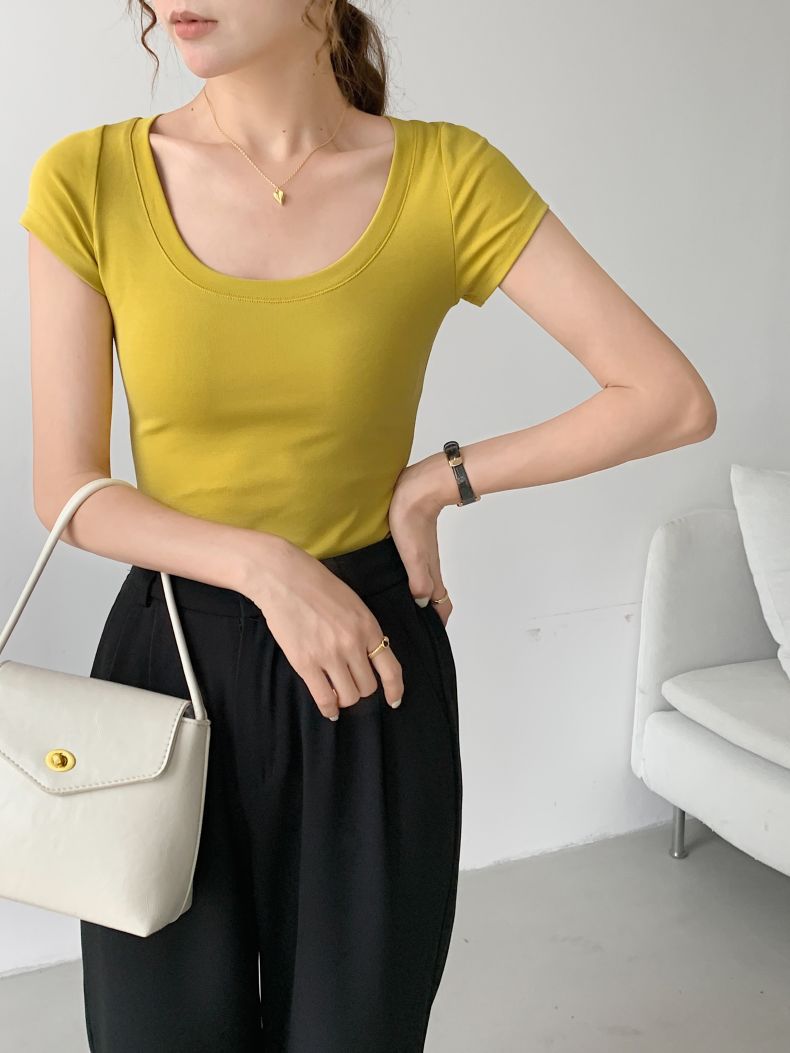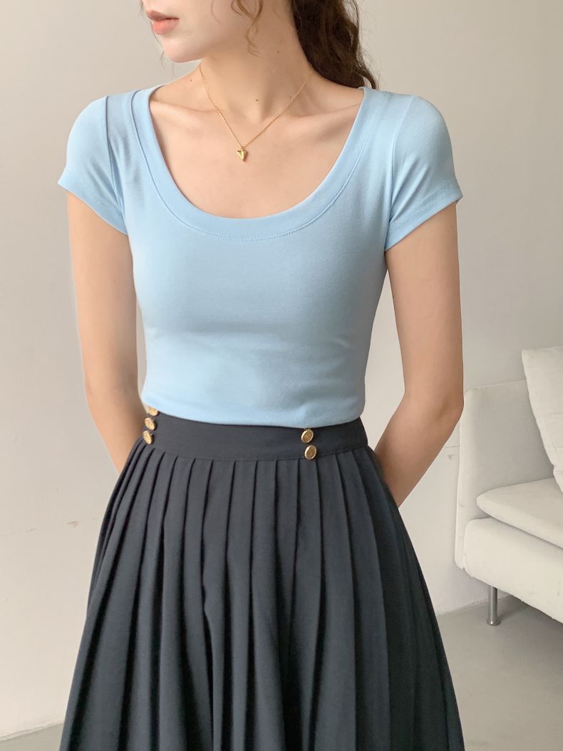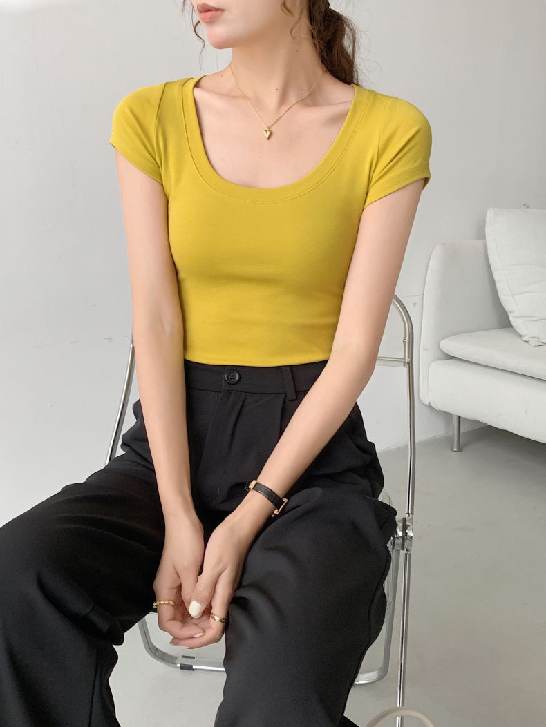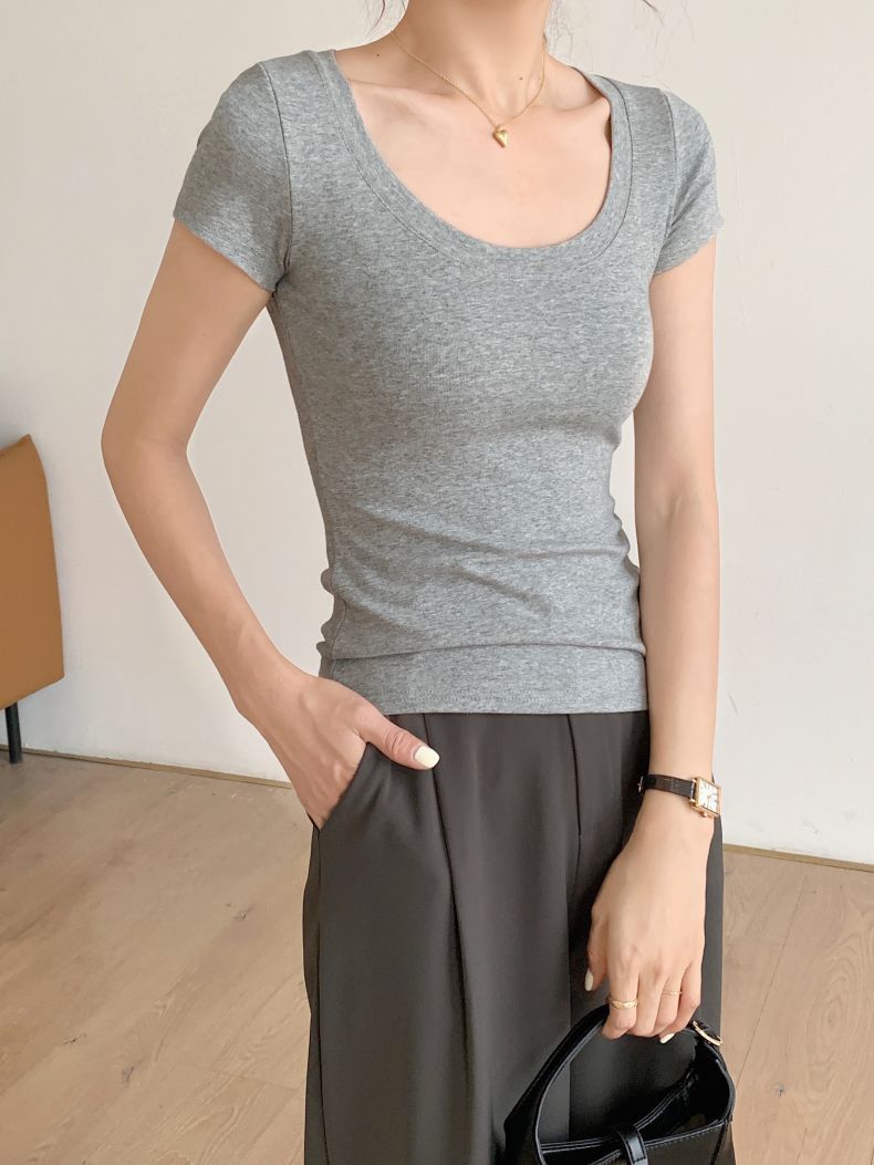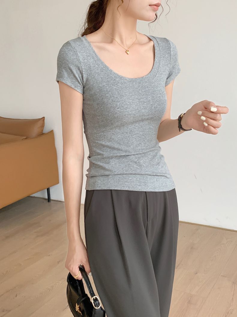 고품질 순수 코튼 티셔츠 여성 반팔 슬림 라운드 넥 섹시 타이트 2025 뉴 여름 탑 솔리드 컬러 바닥 셔츠스토어 가기
