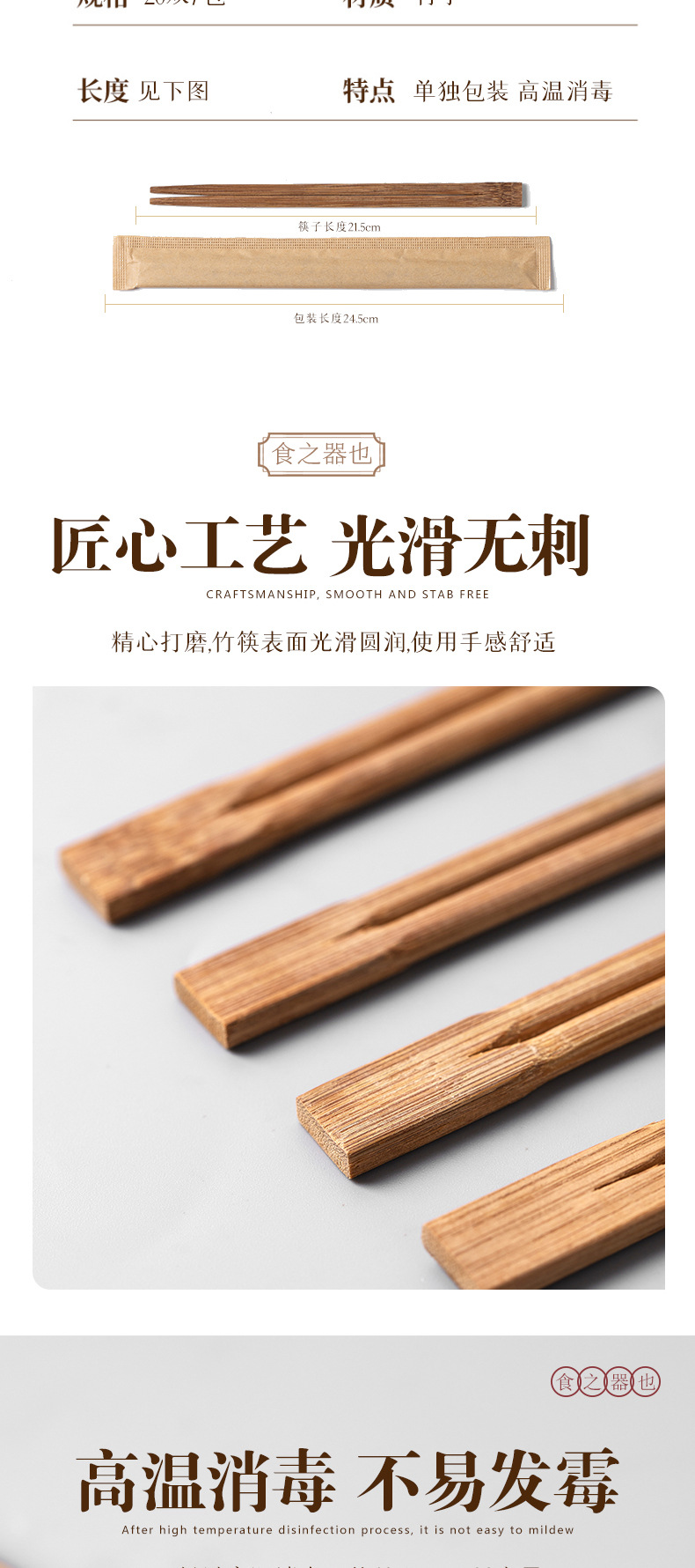 일회용 젓가락 호텔 특수 탄화 고급 가정용 독립 포장 편리한 대나무 젓가락 상업용 세트 식기