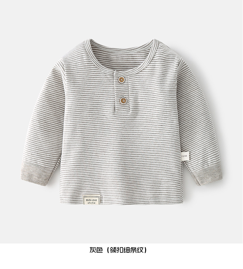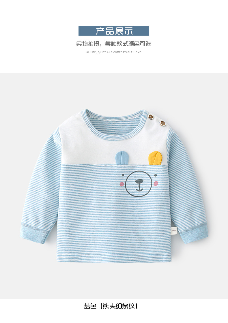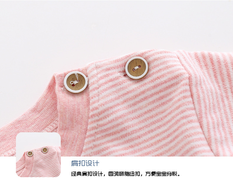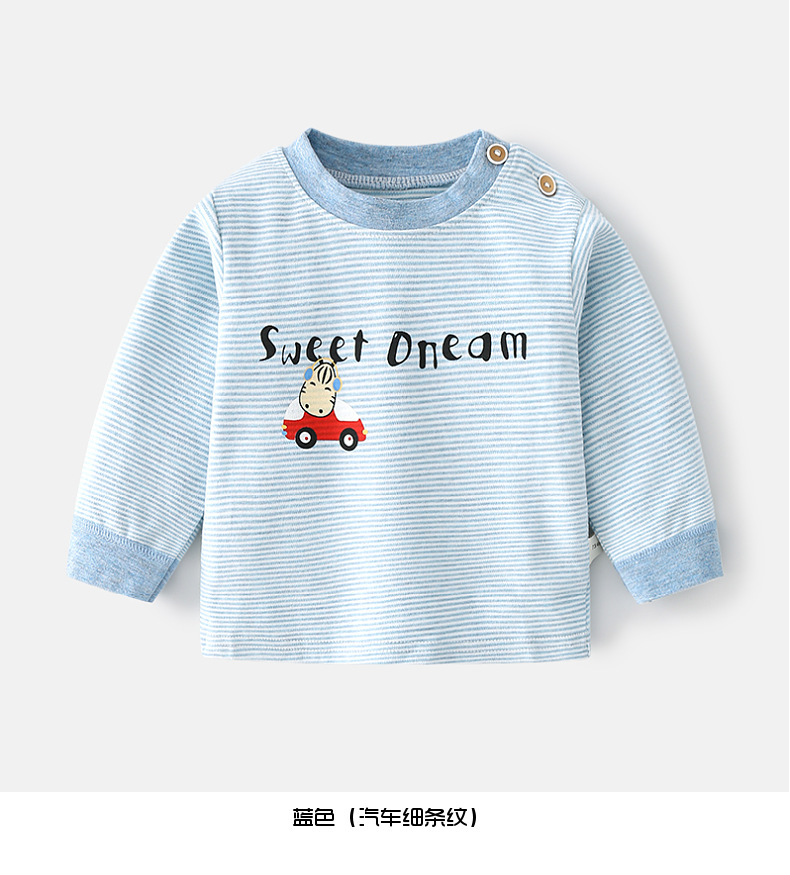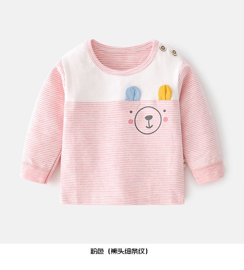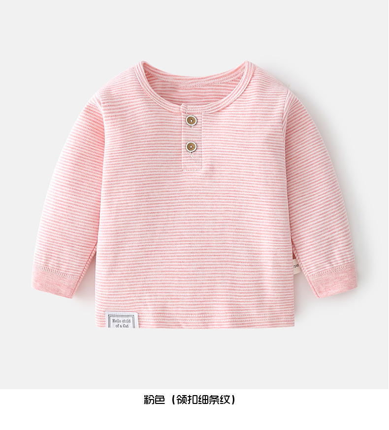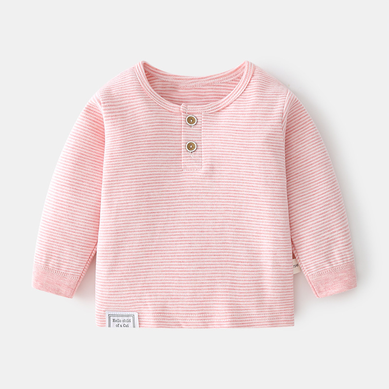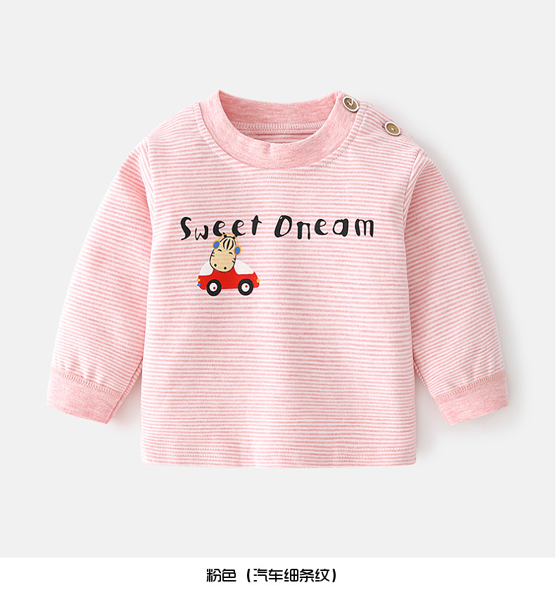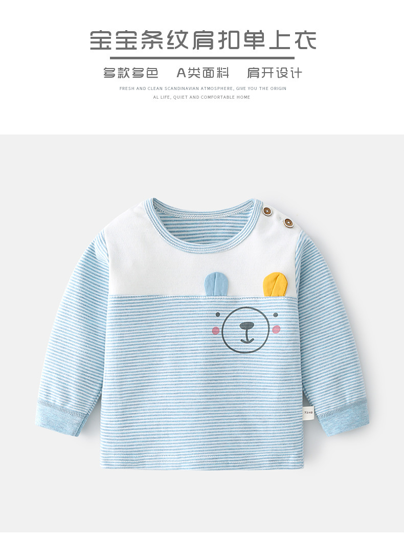 아기 순면 속옷 목록 가을 옷 스트라이프 봄과 가을 아기 기본 셔츠 어린이 어깨 버클 티셔츠