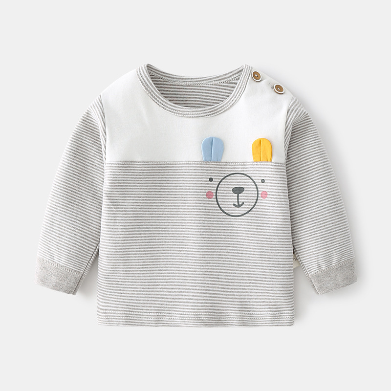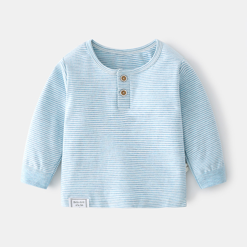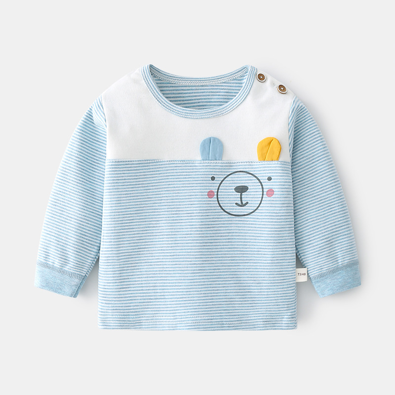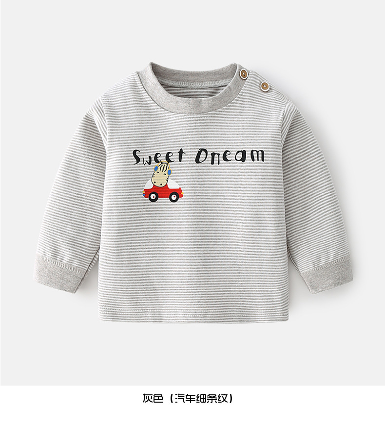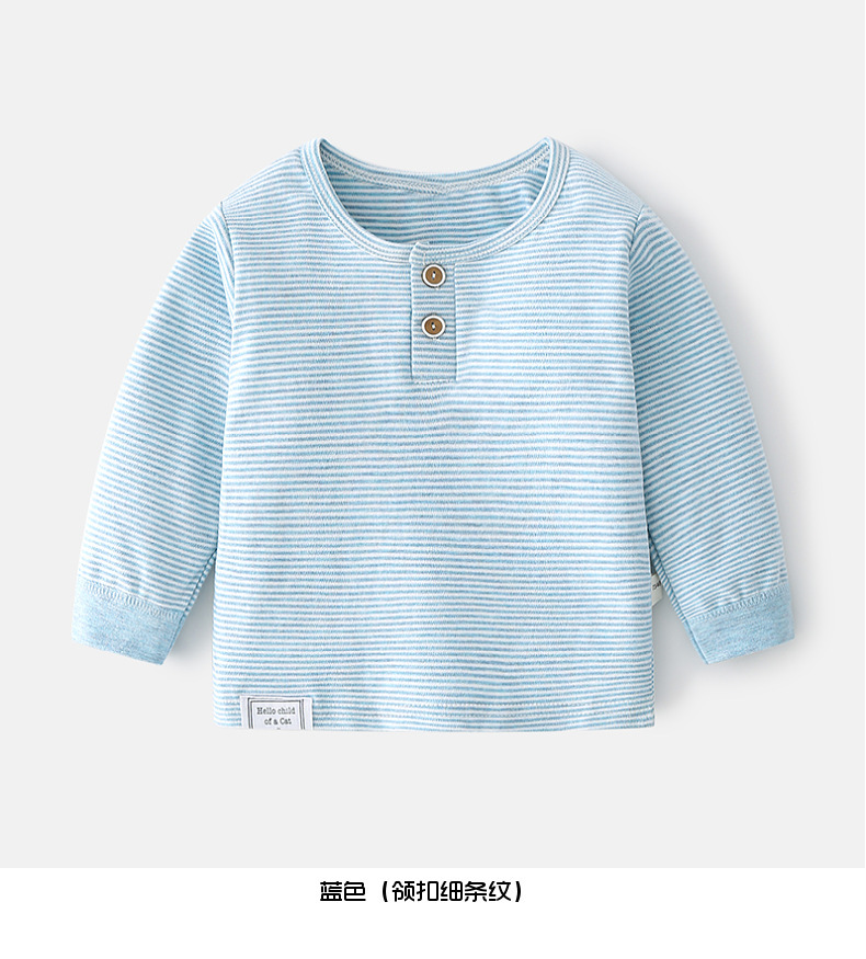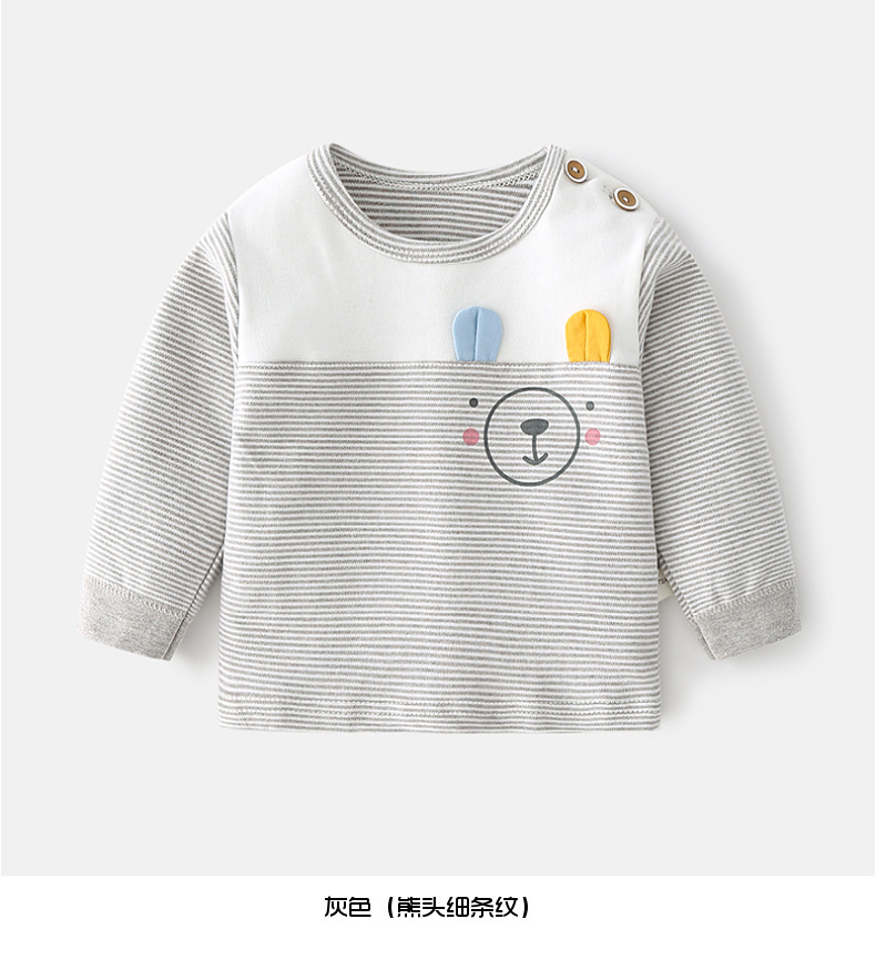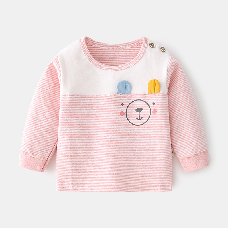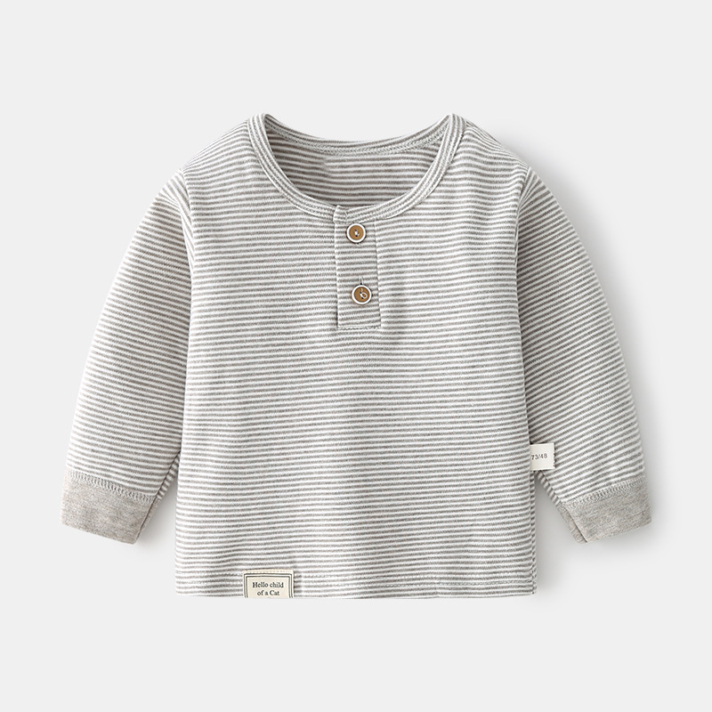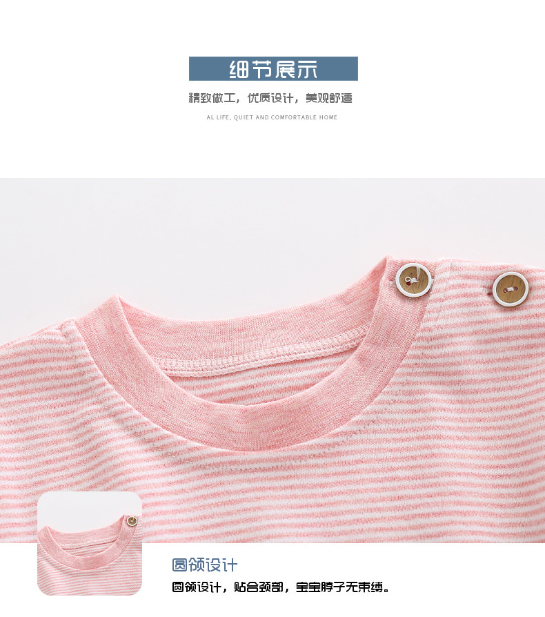 아기 순면 속옷 목록 가을 옷 스트라이프 봄과 가을 아기 기본 셔츠 어린이 어깨 버클 티셔츠