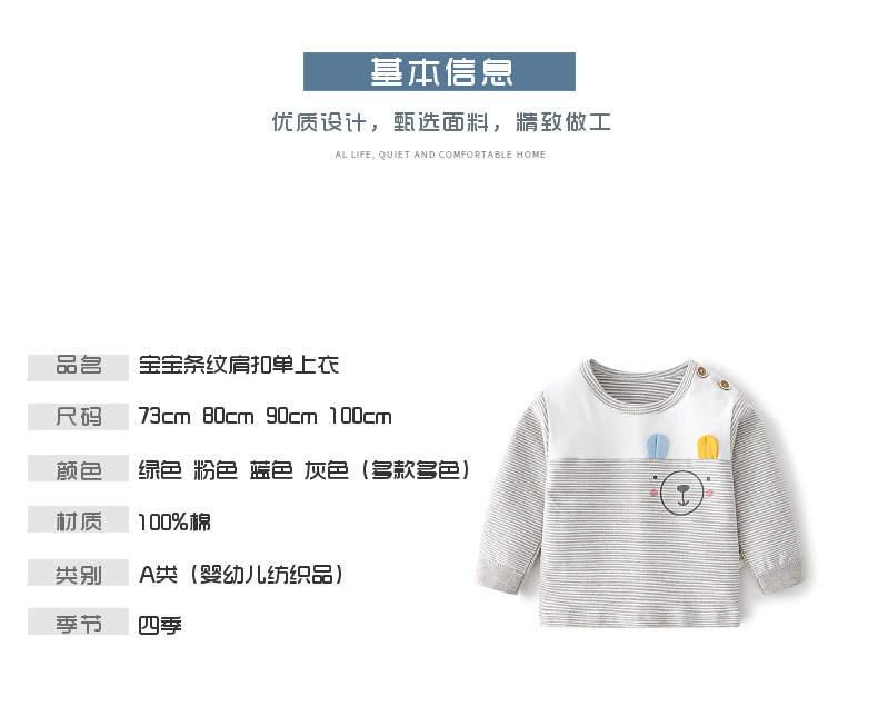 아기 순면 속옷 목록 가을 옷 스트라이프 봄과 가을 아기 기본 셔츠 어린이 어깨 버클 티셔츠스토어 가기