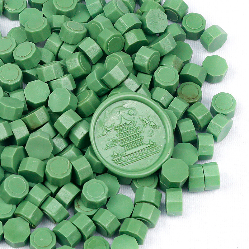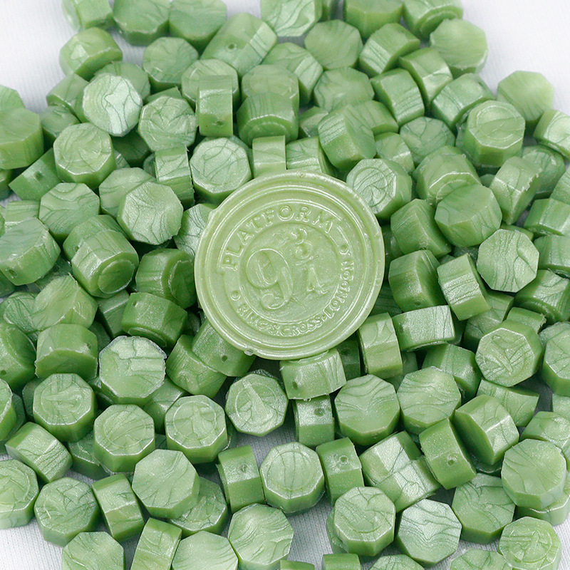 • 단색 왁스 알갱이는 킬로그램 당 약 1600 알갱이로 포장됩니다-진주 빛 다크 그린
