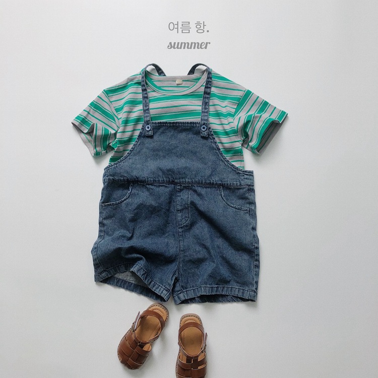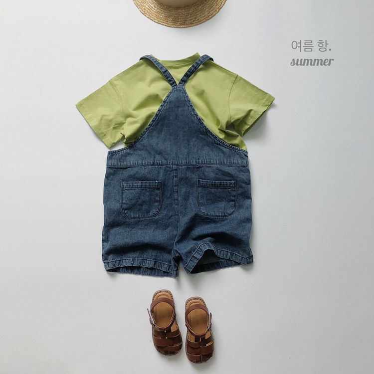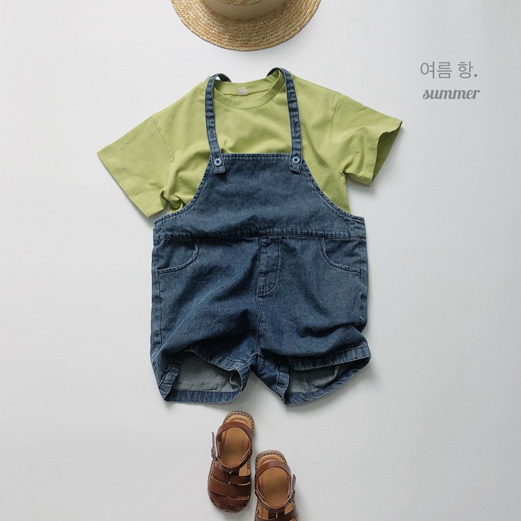 부드럽고 데님 ~ 한국 아동복 여름 어린이 데님 슬링 반바지 소년과 소녀를위한 조정 가능한 점프 슈트스토어 가기