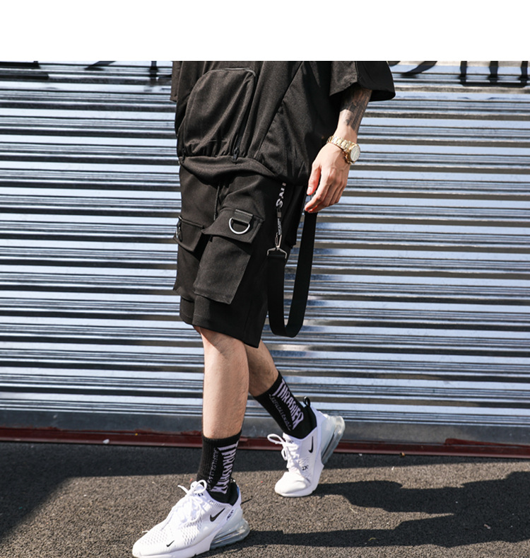 툴링 반바지 남성 트렌디 브랜드 맞춤 신상품 하라주쿠 한국 스타일 느슨한 유행 힙합 리본 바지 트렌디