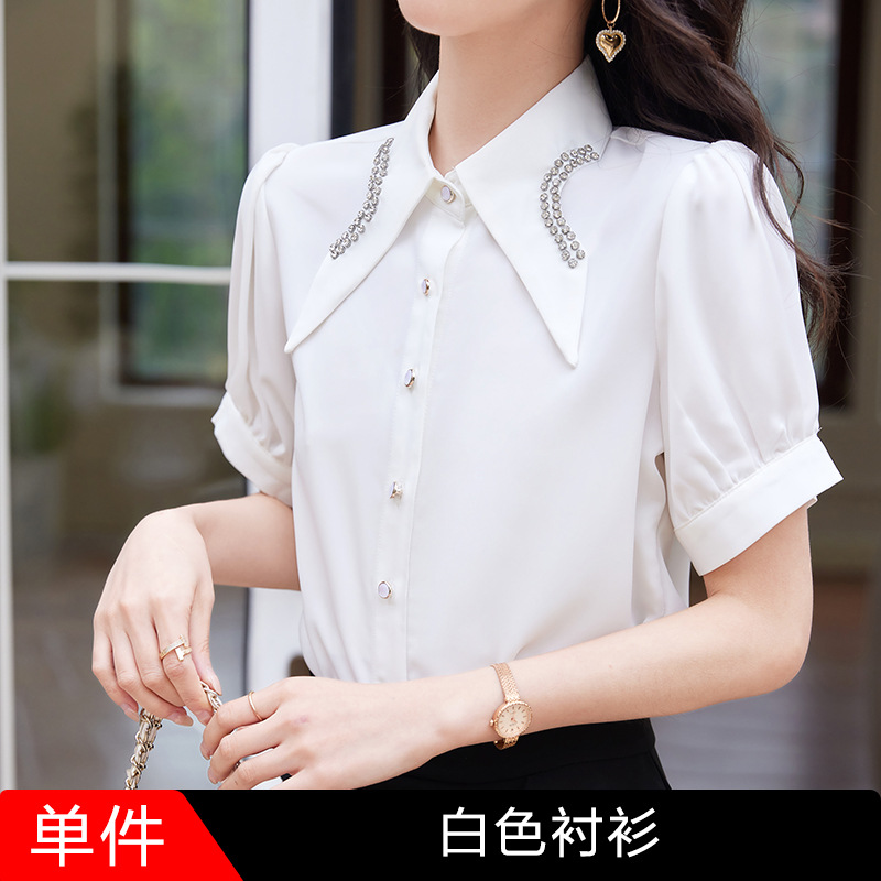 신선하고 달콤한 뾰족한 칼라의 흰색 셔츠 여성 봄옷 2024년 틈새 디자인 감각적이고 다재다능한 여성 셔츠스토어 가기