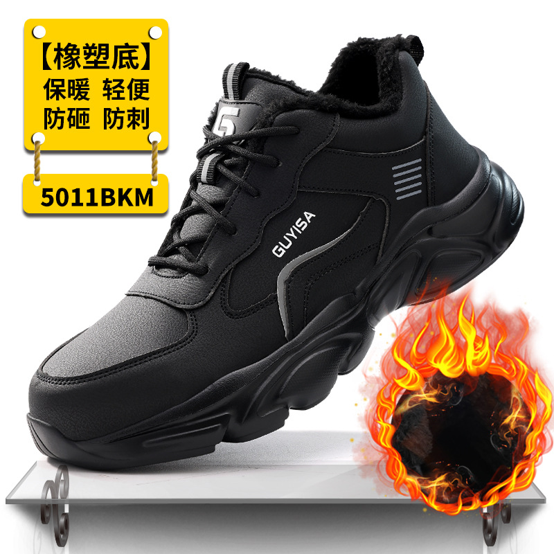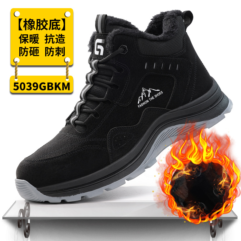 남성용 겨울 작업화, 충격 방지, 천공 방지, 스틸 토캡, 보온, 내마모성, 발이 피곤하지 않은, 안감 플리스 작업 안전화스토어 가기
