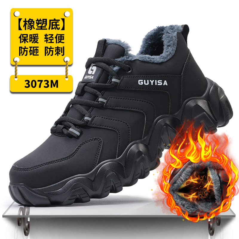 남성용 겨울 작업화, 충격 방지 및 관통 방지 스틸 토캡 신발, 따뜻하고 장시간 서 있어도 피곤하지 않은 플러스 벨벳 안전화스토어 가기