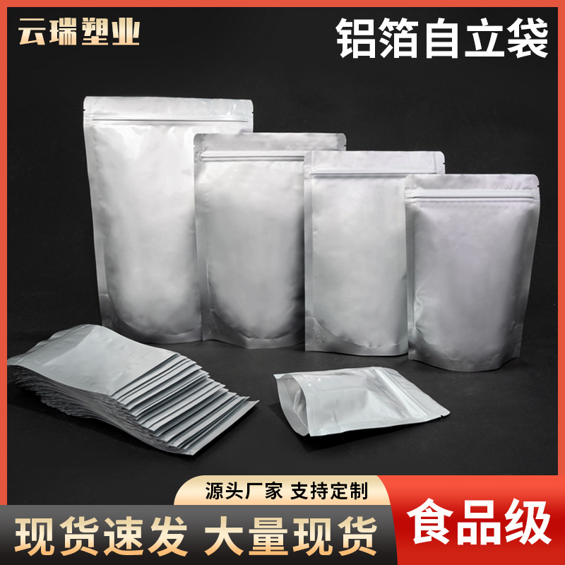 재고 알루미늄 호일 자체 밀봉 백 차 순수 알루미늄 자체 지지 자체 밀봉 식품 백 지퍼 밀봉 포장 백 분말 알루미늄 호일 백스토어 가기