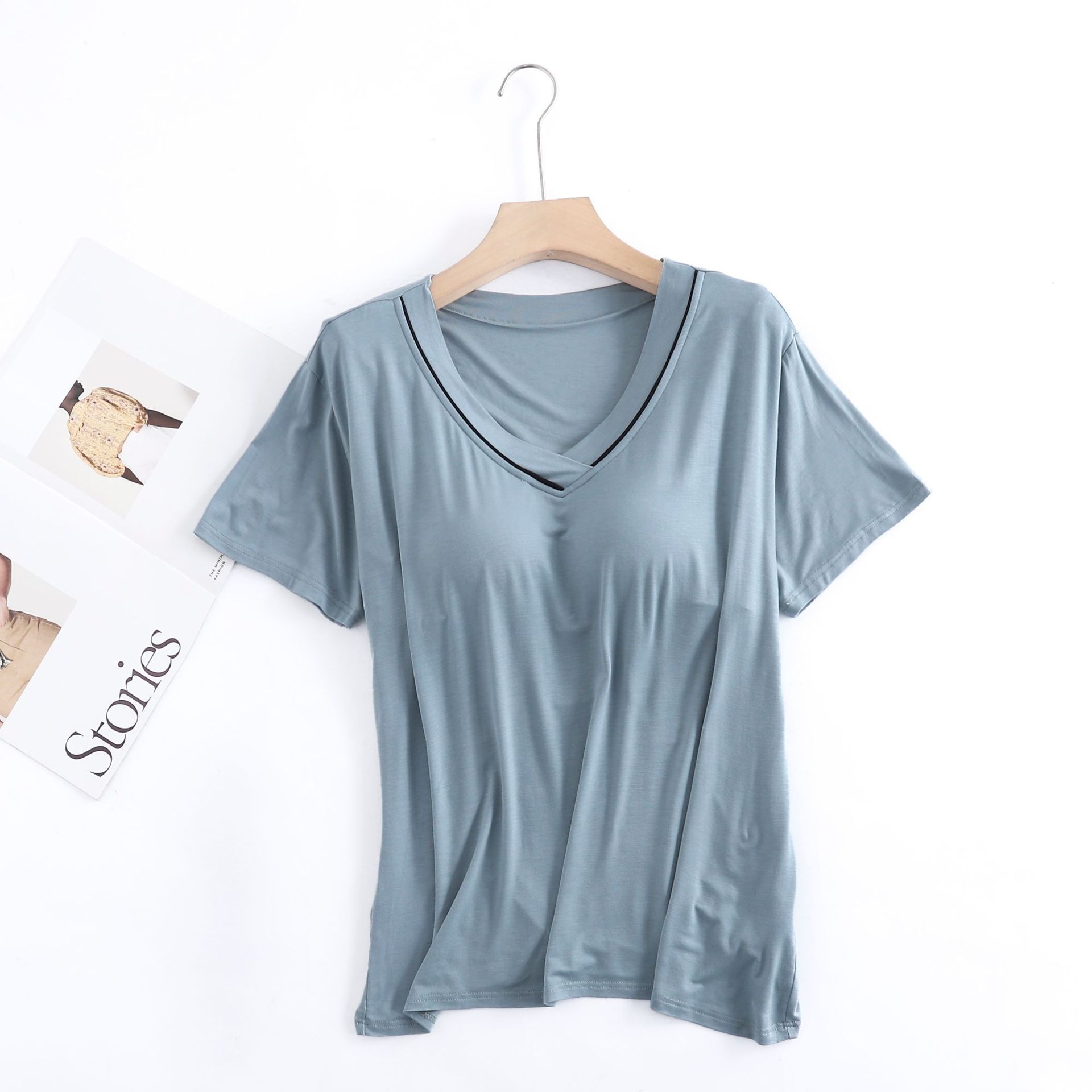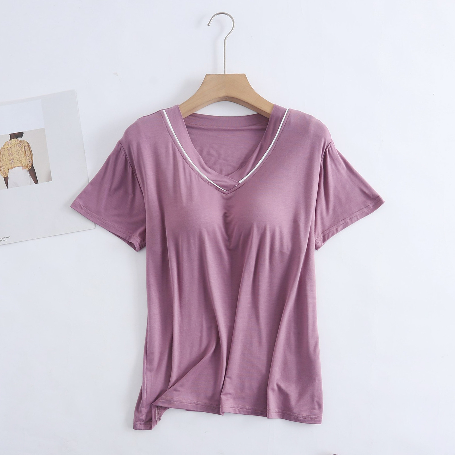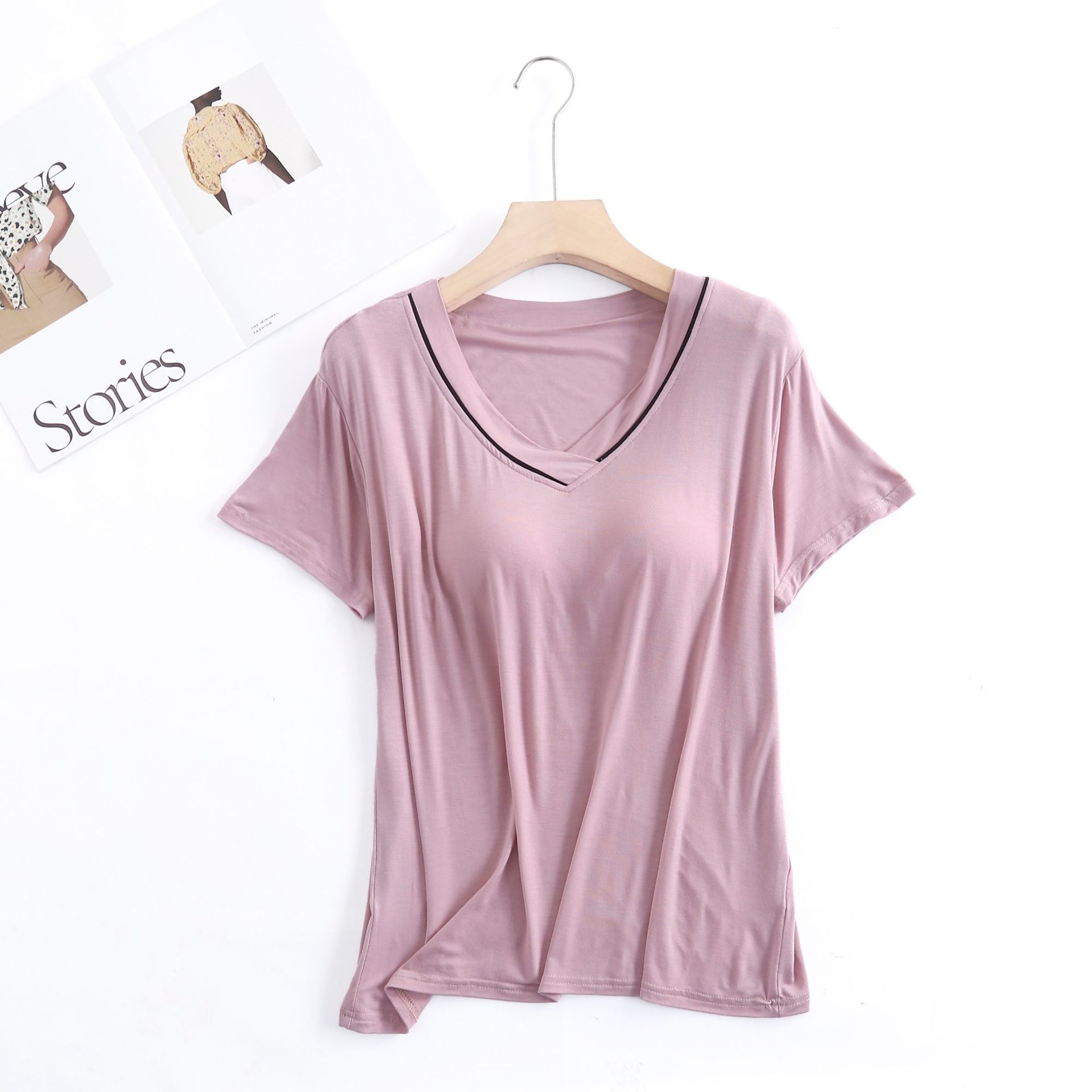 모달 패딩 잠옷 새로운 V-넥 여성용 반 소매 여름 얇은 느슨한 짧은 소매 느슨한 가정 옷스토어 가기