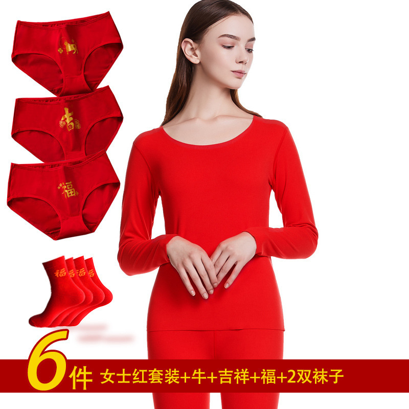 • 빨간 양면 벨벳 여성용 세트 + 소 + 푸 + 지 + 양말 2 켤레