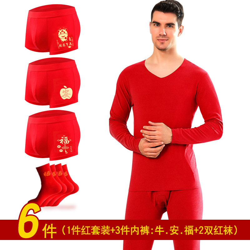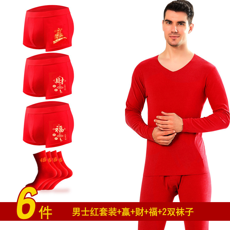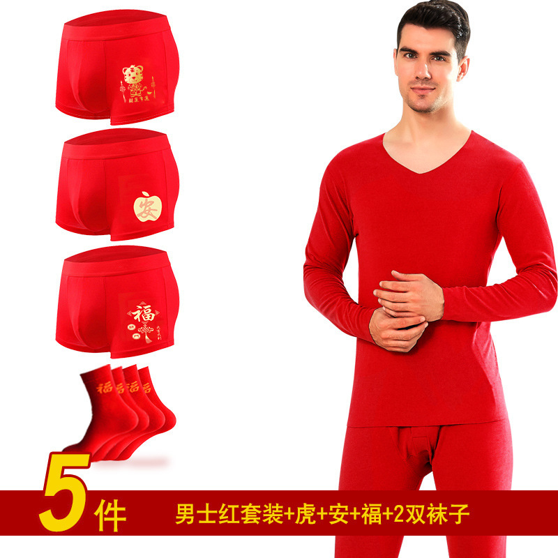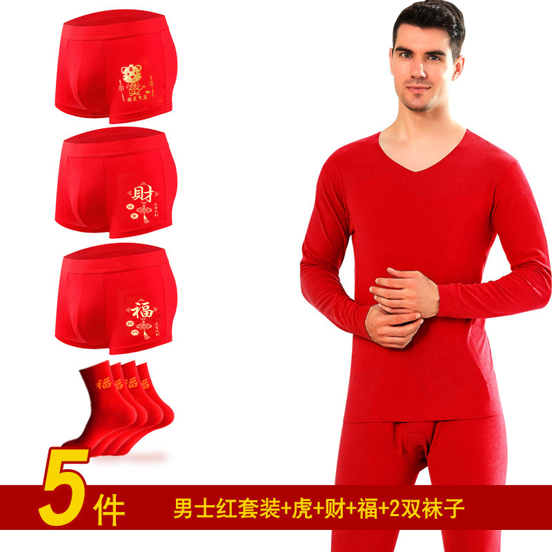 남자의 열 속옷 남자의 세트 여자의 추적 없는 양털 가을 옷과 바지 호랑이 호랑이 속옷의 큰 빨간 Bermingnian 년스토어 가기
