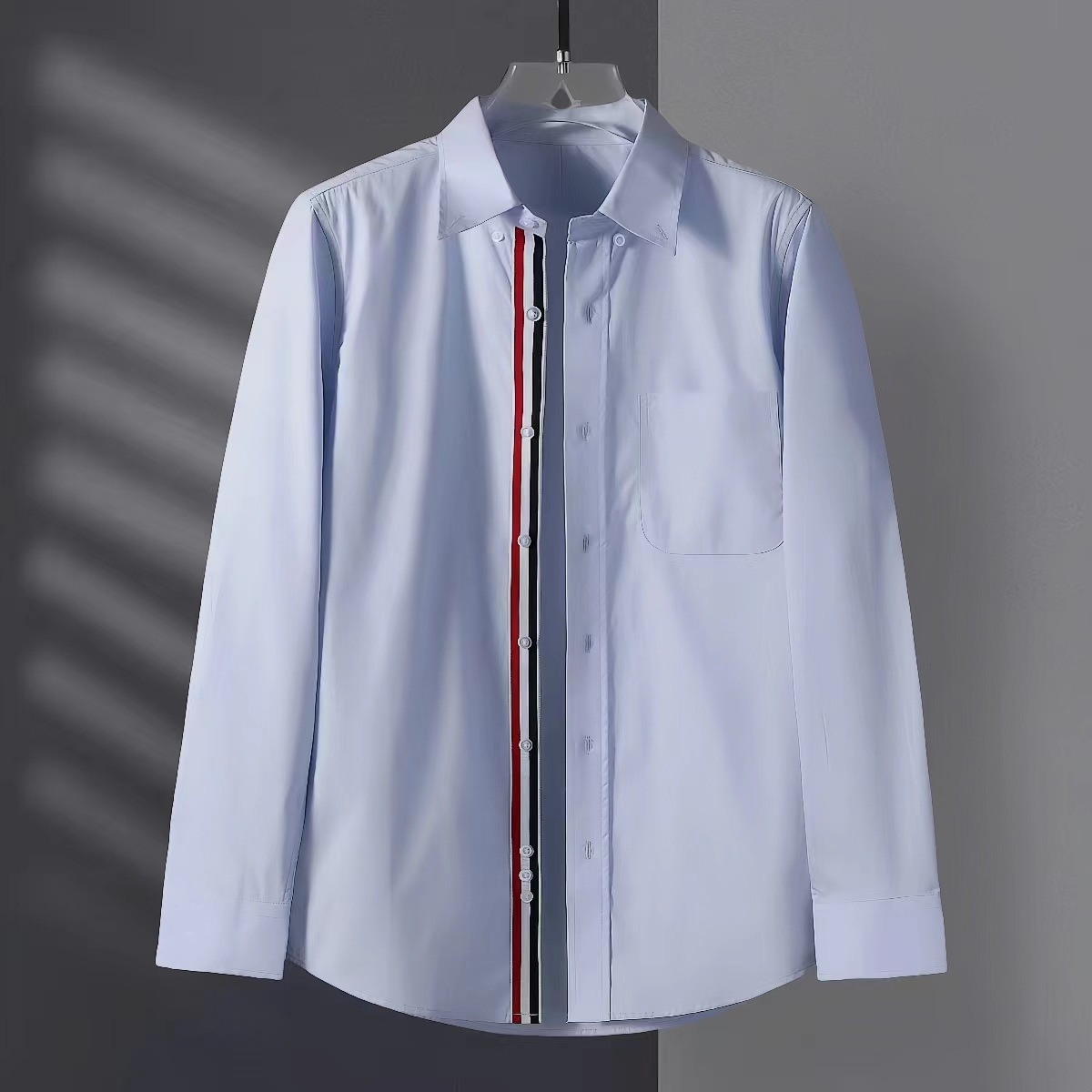 TB 셔츠 남성과 여성의 포플린 얇은 소매 캐주얼 한국 스타일 청소년 내부 리본 스트라이프 유행 모든 경기 셔츠스토어 가기