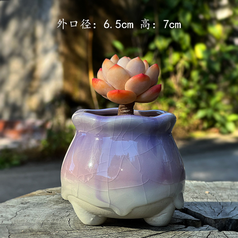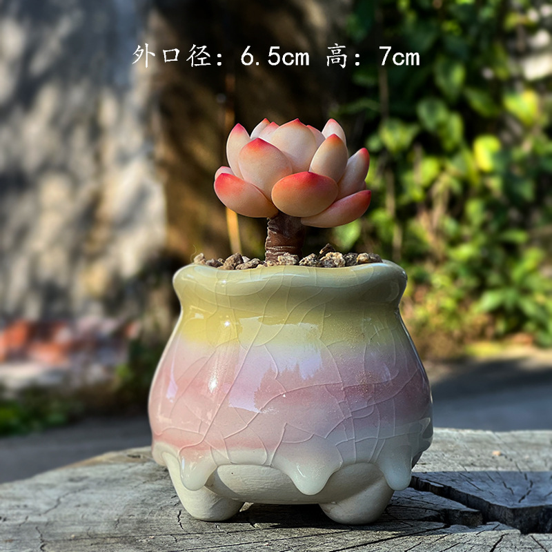 간단한 캔디 컬러 다육 화분, 얼음 균열 유약, 창의적인 맞춤형 작은 화분, 신선하고 귀여운 화분, 무지개 화분