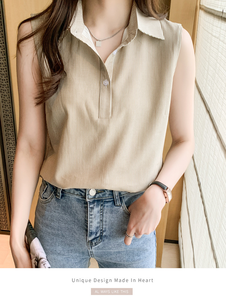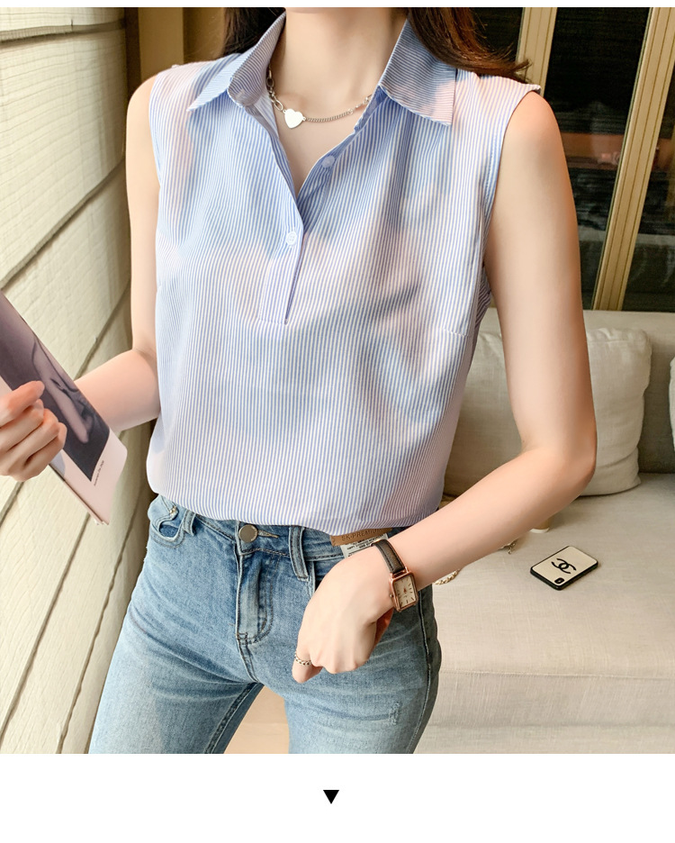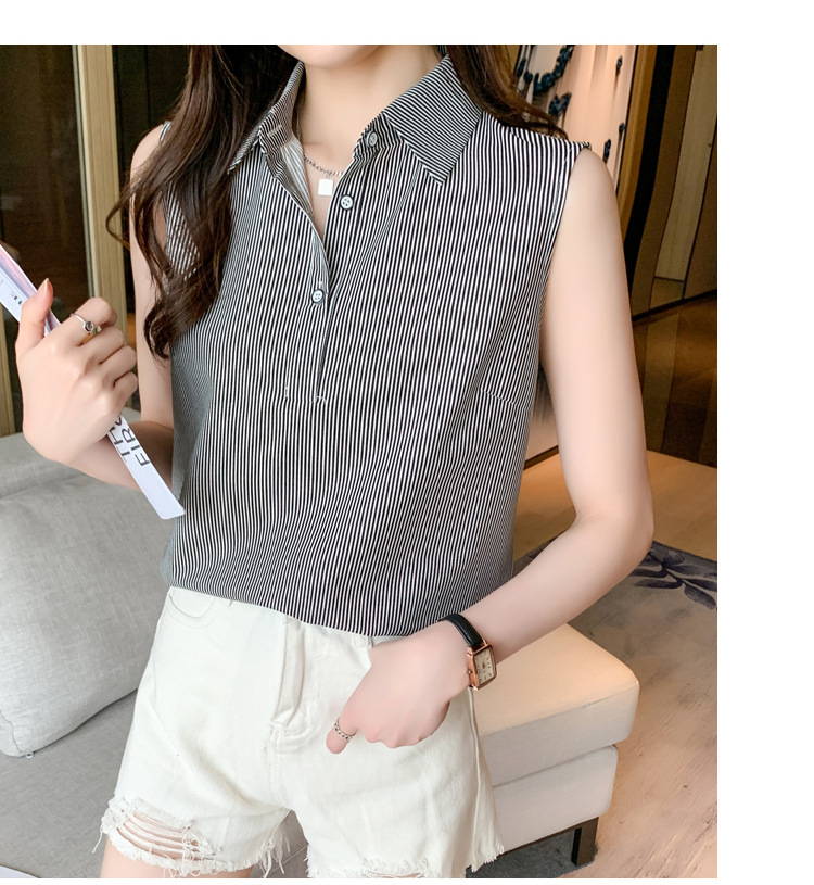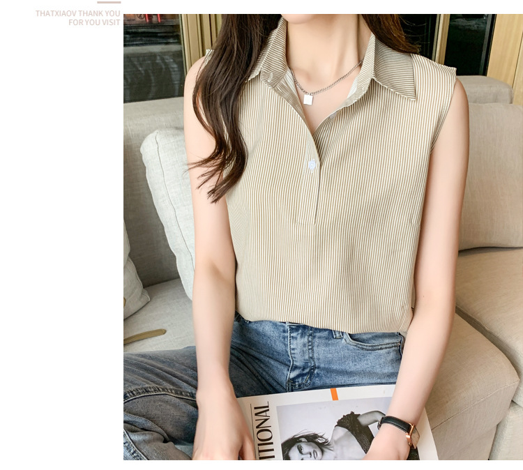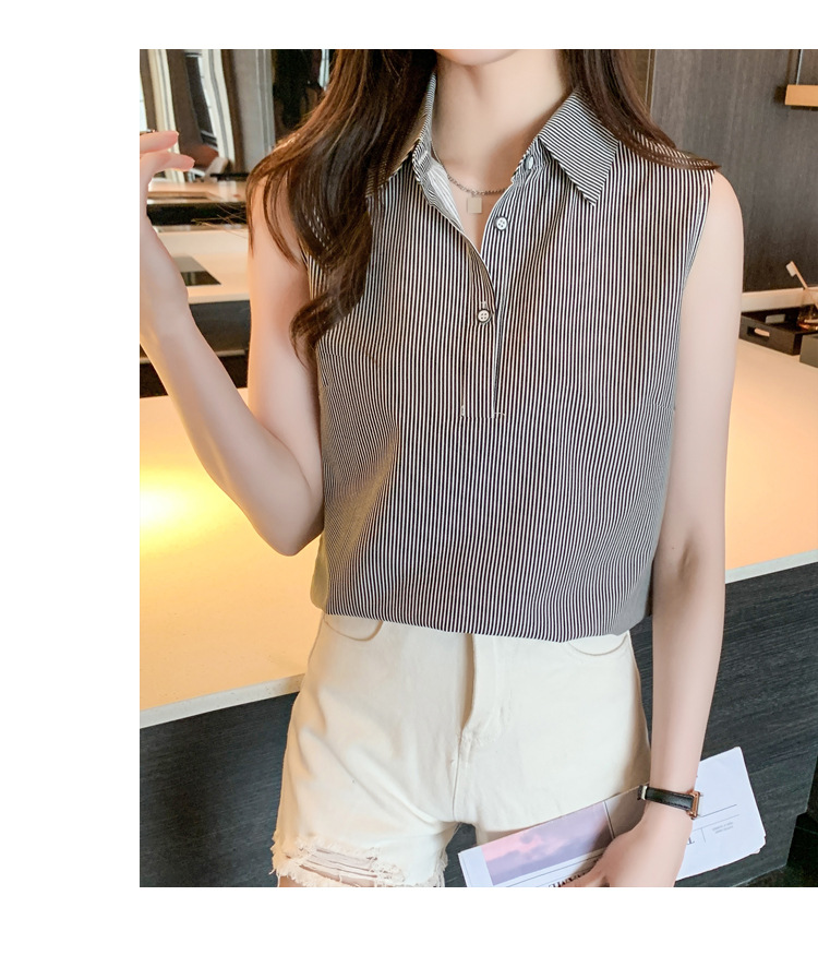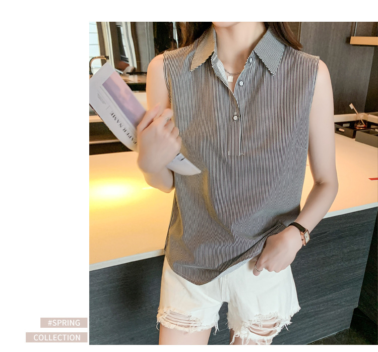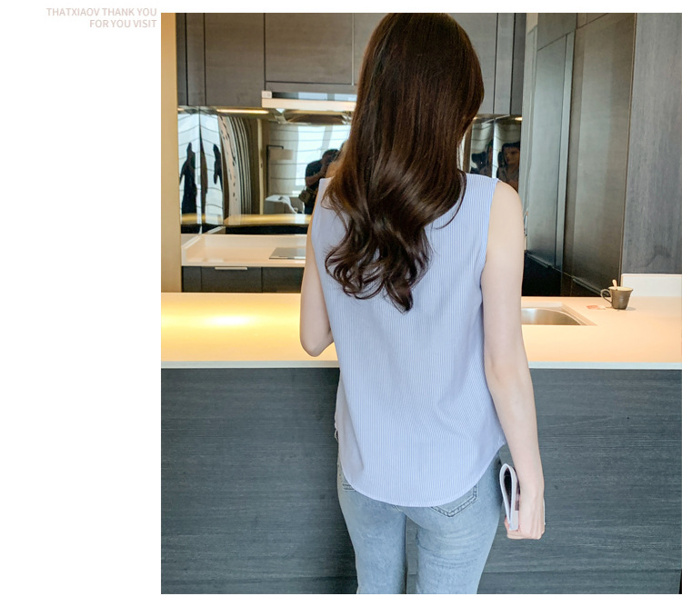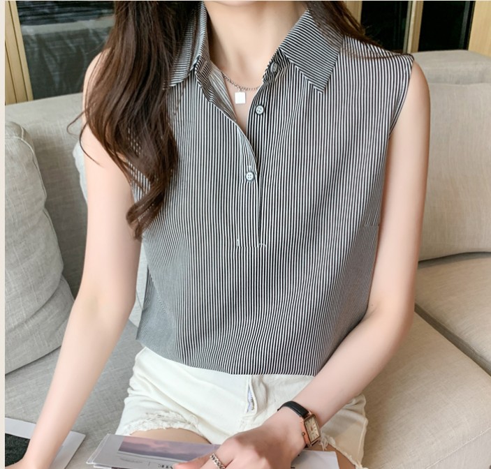 대외 무역 새로운 스타일 서양 스타일 스트라이프 여름 조끼 조끼 여자의 겉옷 셔츠 민소매 쉬폰베이스 셔츠 내부 탑스토어 가기