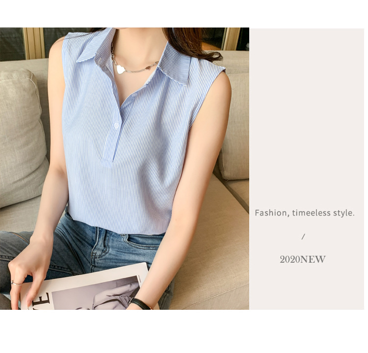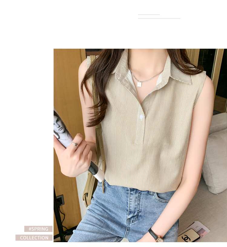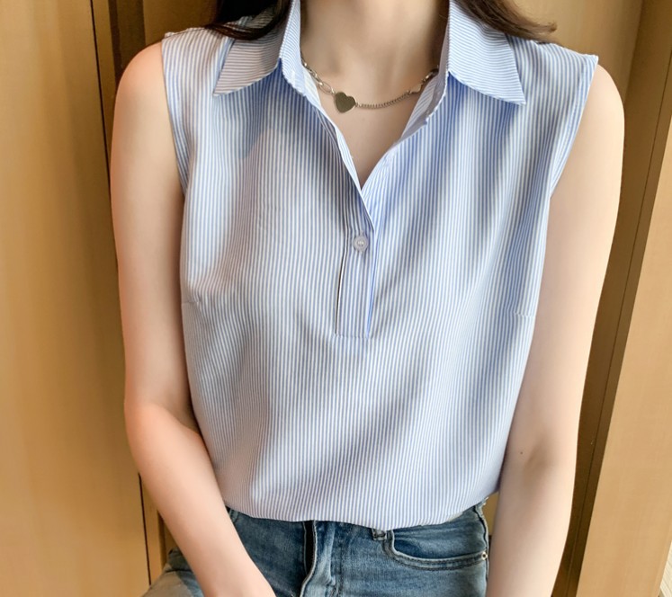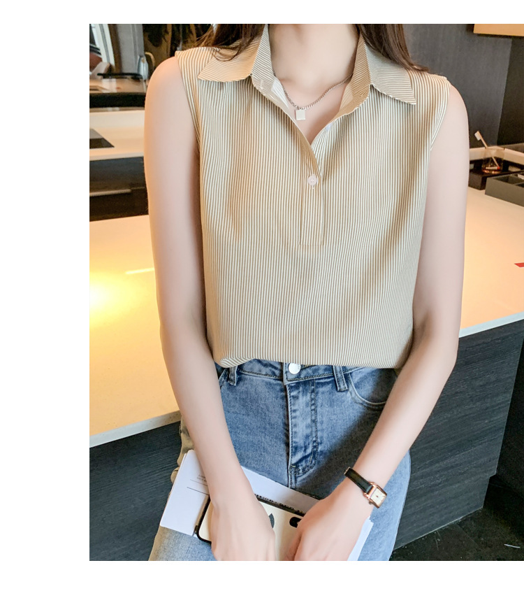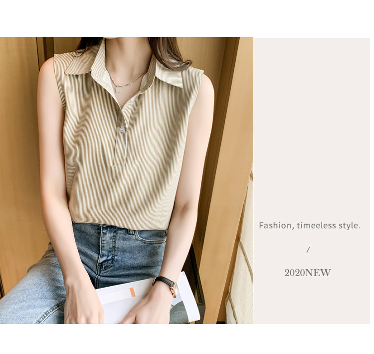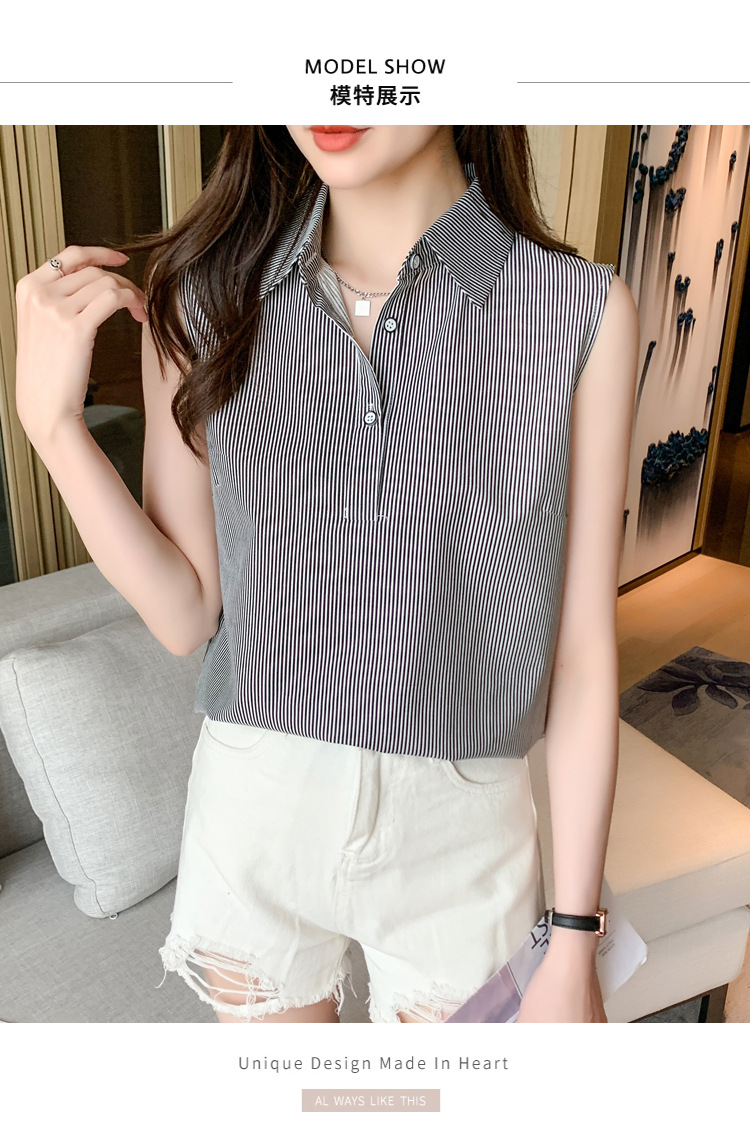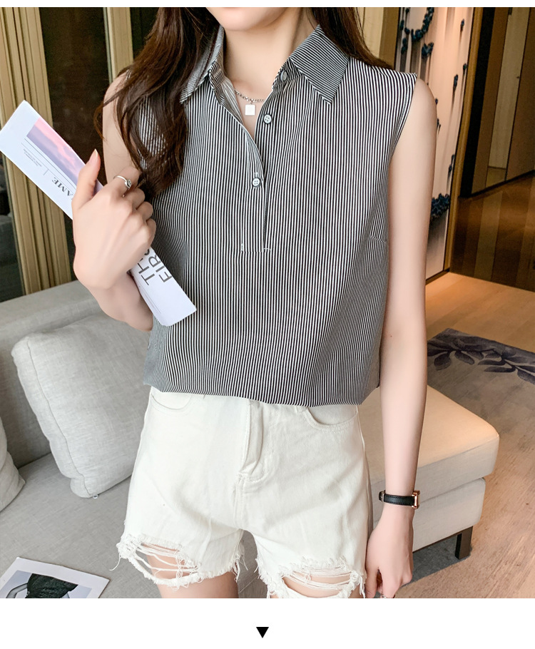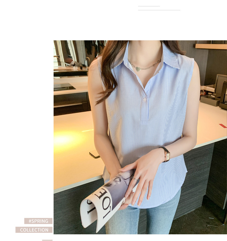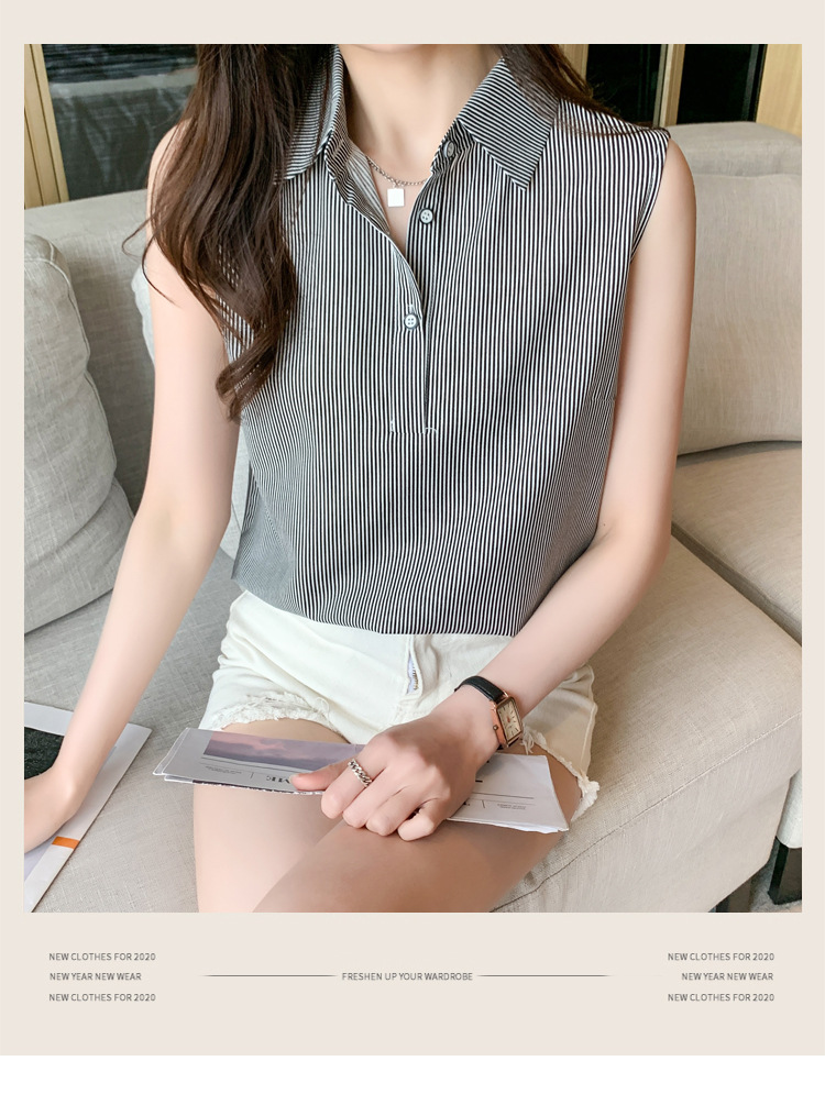 대외 무역 새로운 스타일 서양 스타일 스트라이프 여름 조끼 조끼 여자의 겉옷 셔츠 민소매 쉬폰베이스 셔츠 내부 탑스토어 가기