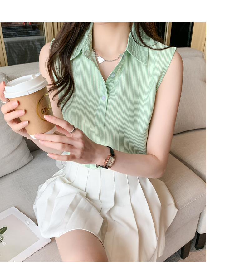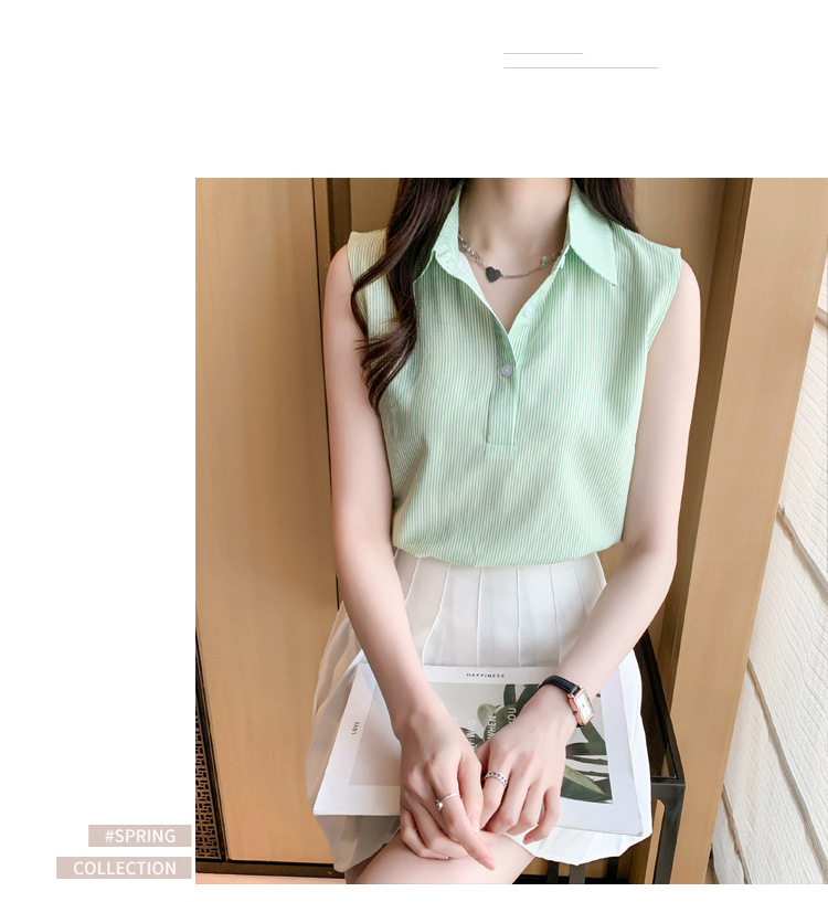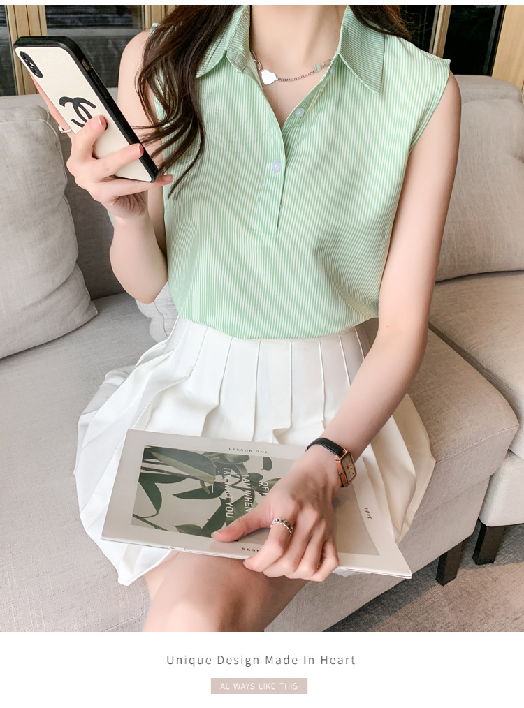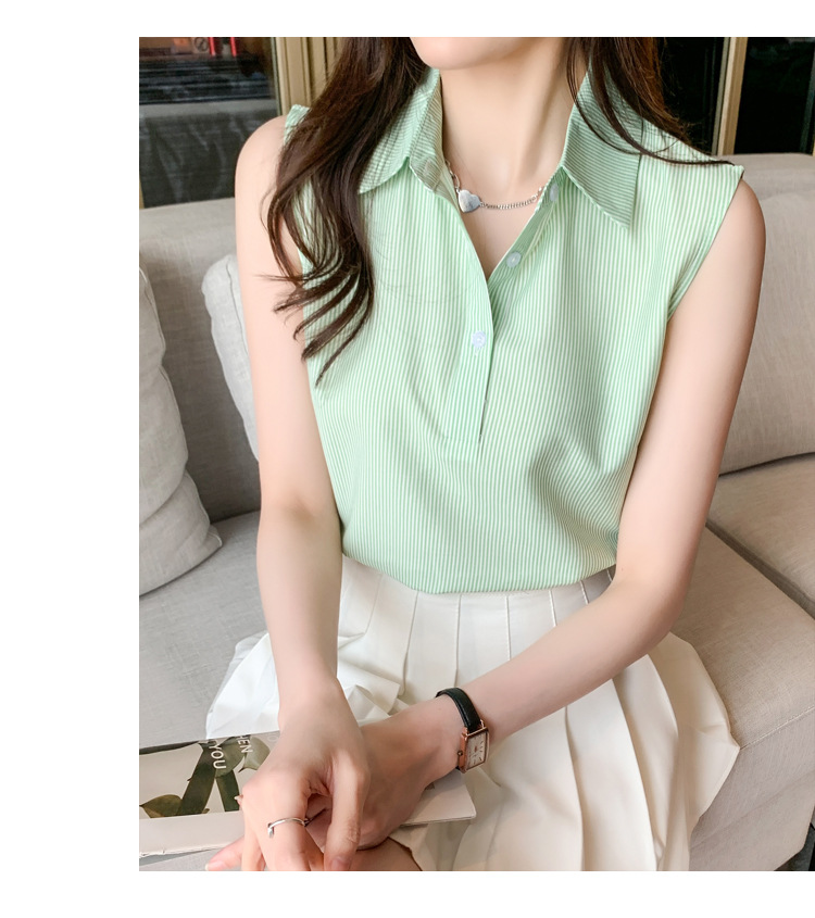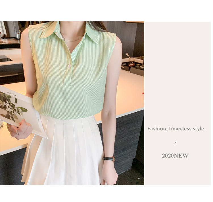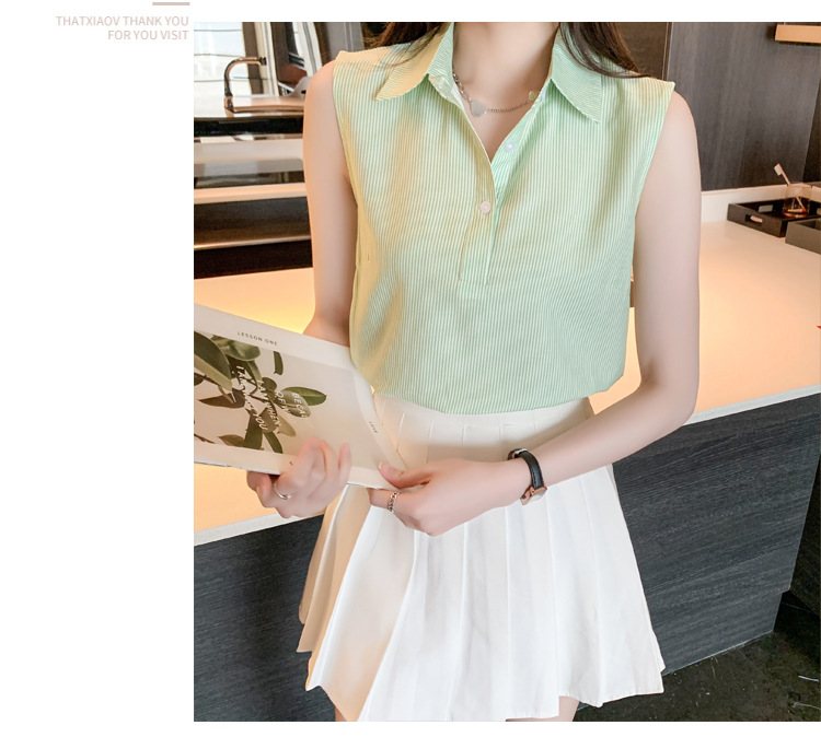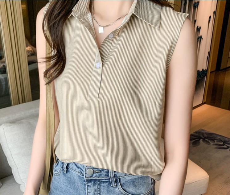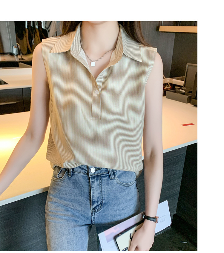 대외 무역 새로운 스타일 서양 스타일 스트라이프 여름 조끼 조끼 여자의 겉옷 셔츠 민소매 쉬폰베이스 셔츠 내부 탑스토어 가기