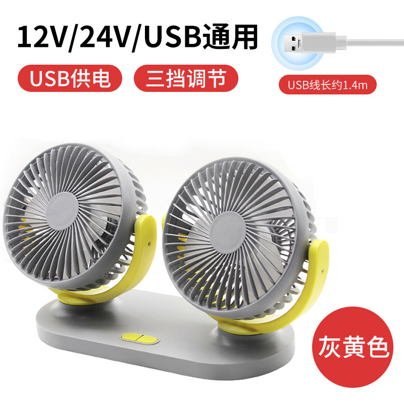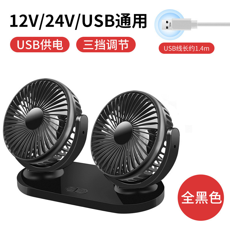 车载风扇12V 24V通用汽车用小电风扇大货车双头摇头USB风扇R-8037
