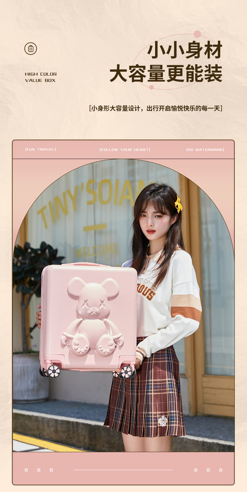 폭력적인 곰 알루미늄 프레임 여행 가방 엄마와 아이 유니버설 휠 가방 14/18 인치 학생 대용량 PC 트롤리 케이스
