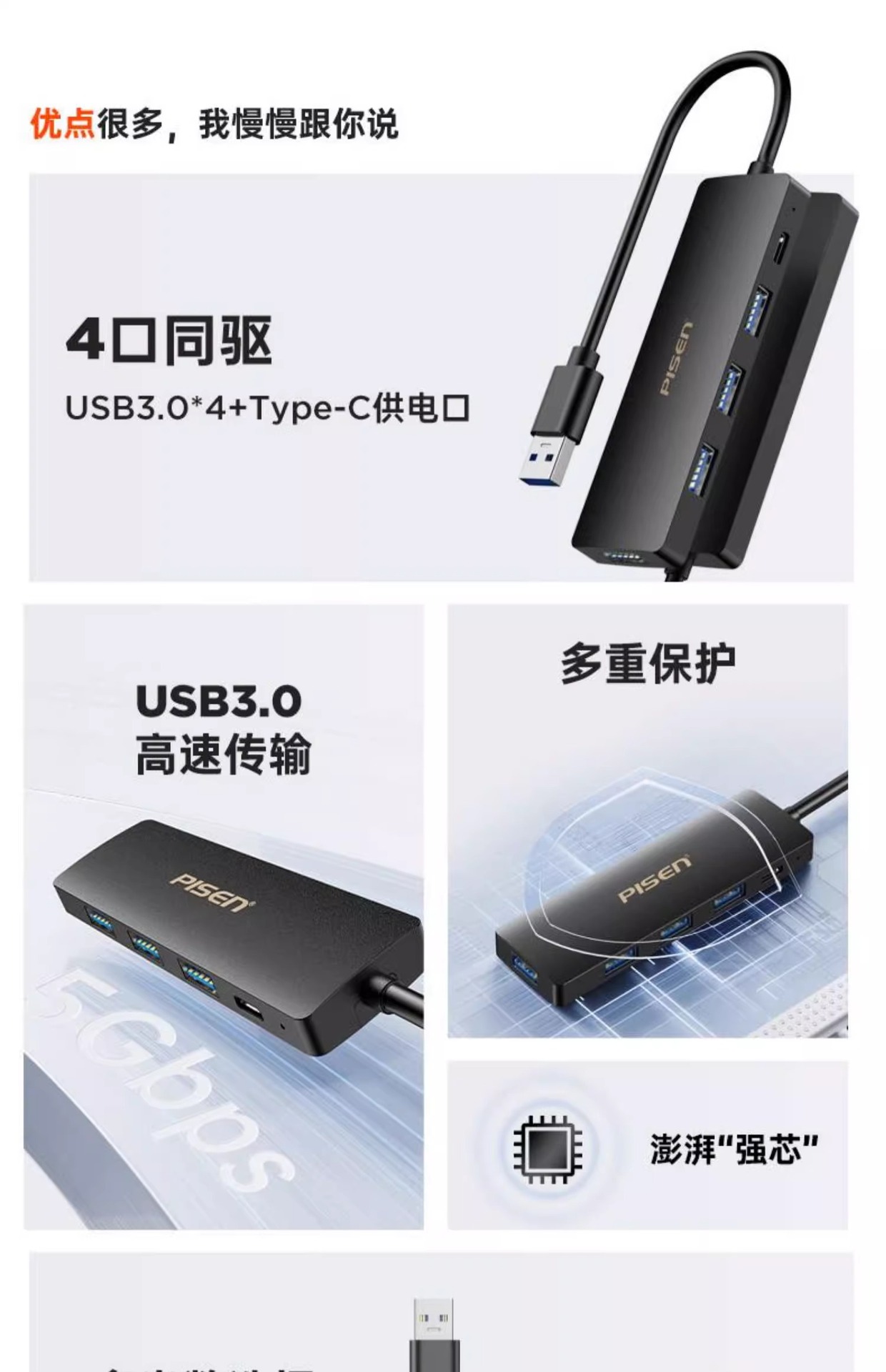 Pinsheng USB3.0 분배기 변환 헤드 허브 멀티 포트 노트북 U 디스크 2.0 확장 도크 하드 디스크스토어 가기
