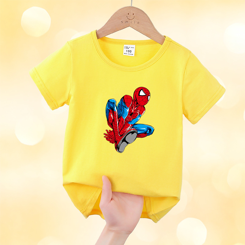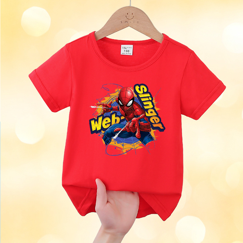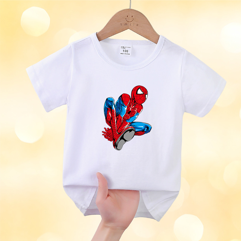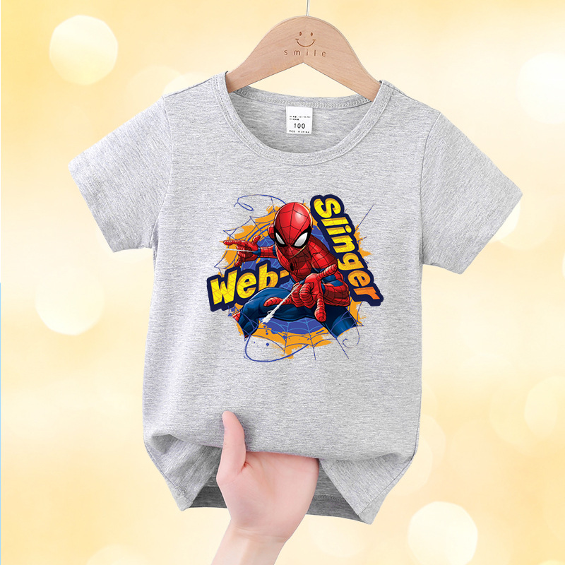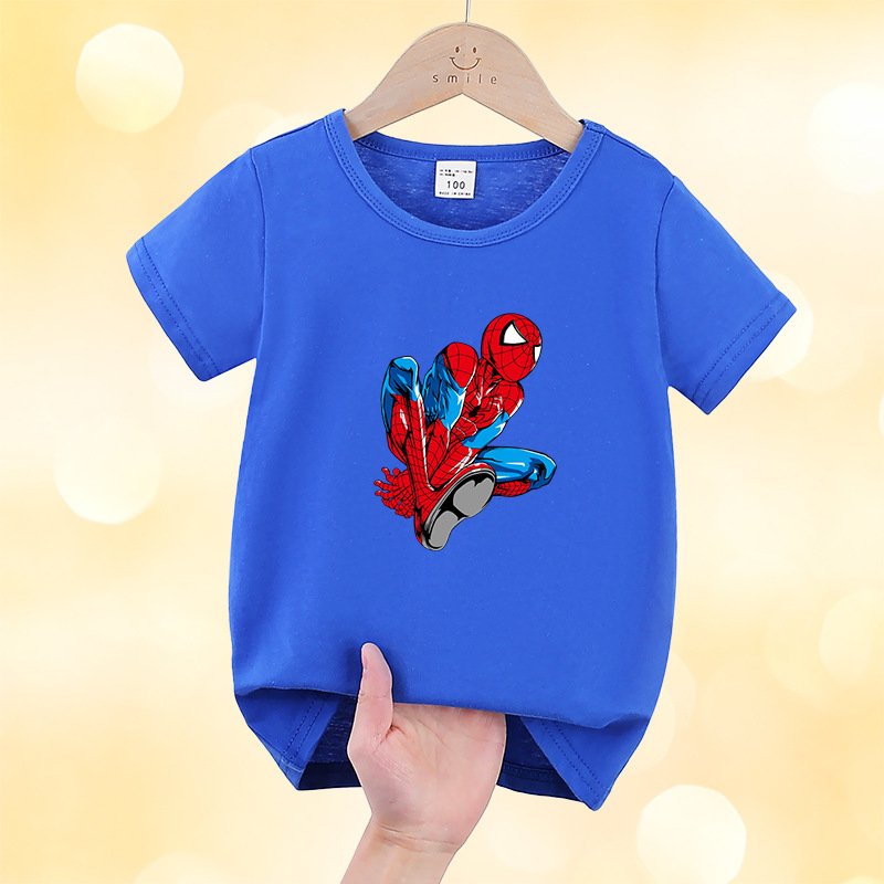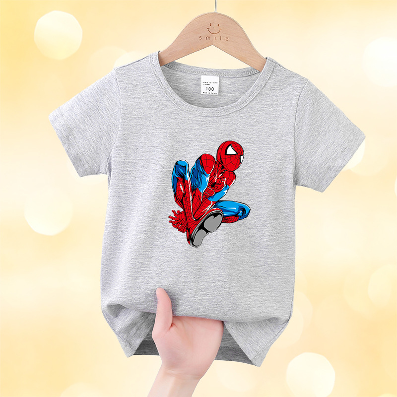 어린이 반팔 스파이더 맨 아동복 소년 여름 순면 티셔츠 만화 탑 땀을 흘리는 어린이 서양식 반팔 티셔츠