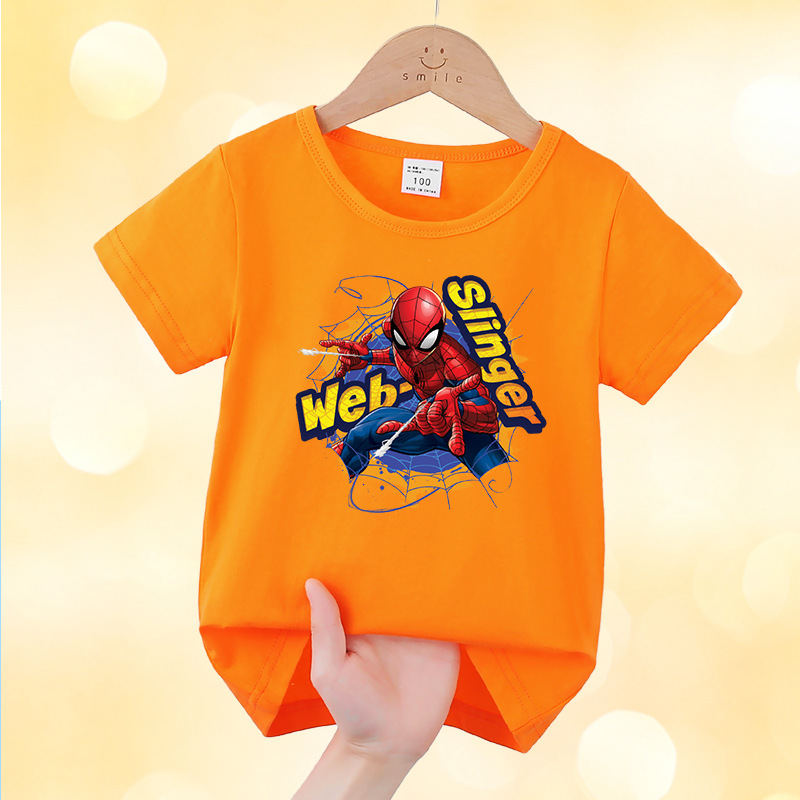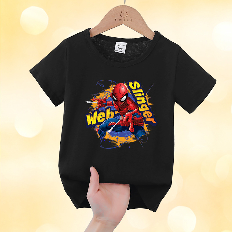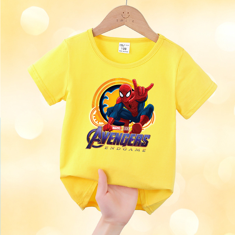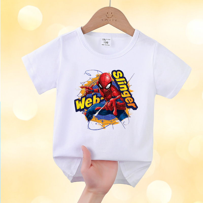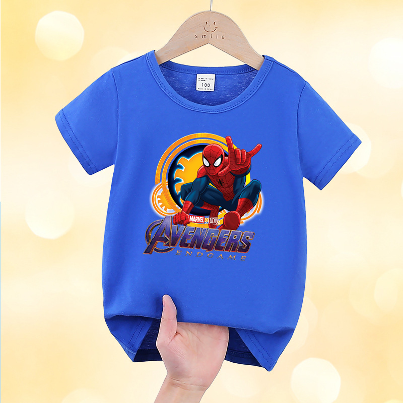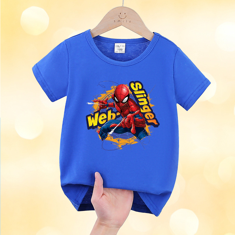 어린이 반팔 스파이더 맨 아동복 소년 여름 순면 티셔츠 만화 탑 땀을 흘리는 어린이 서양식 반팔 티셔츠