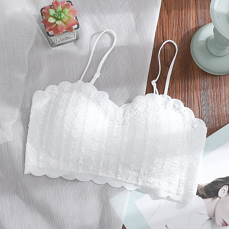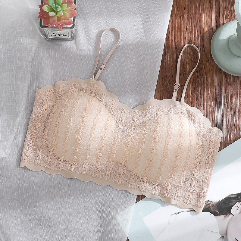 2022 새로운 레이스 튜브 탑 안티 라이트 아름다운 뒤 속옷 여성용 캐미솔 작은 조끼 아이스 실크 자카드 원활한 랩 브라