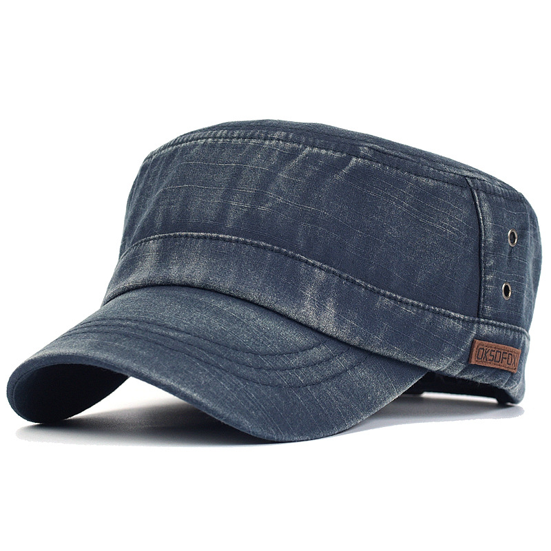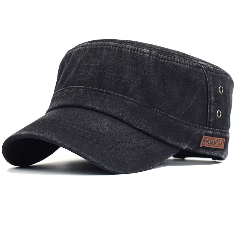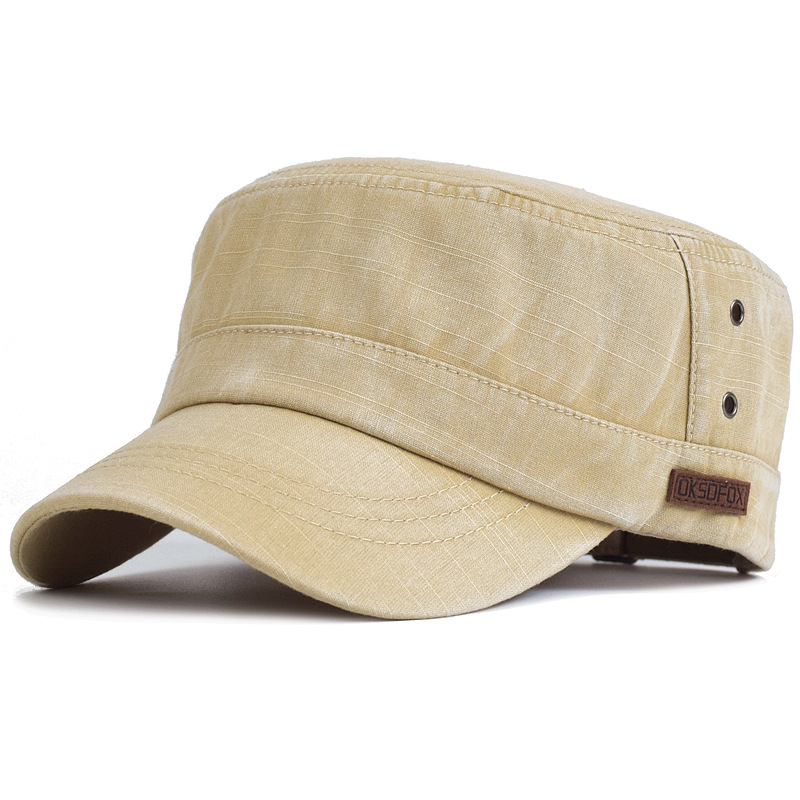 순면 세척 평면 모자 단색 군사 모자 야외 태양 보호 모자 등산 남성 정점 모자 대외 무역 단색스토어 가기