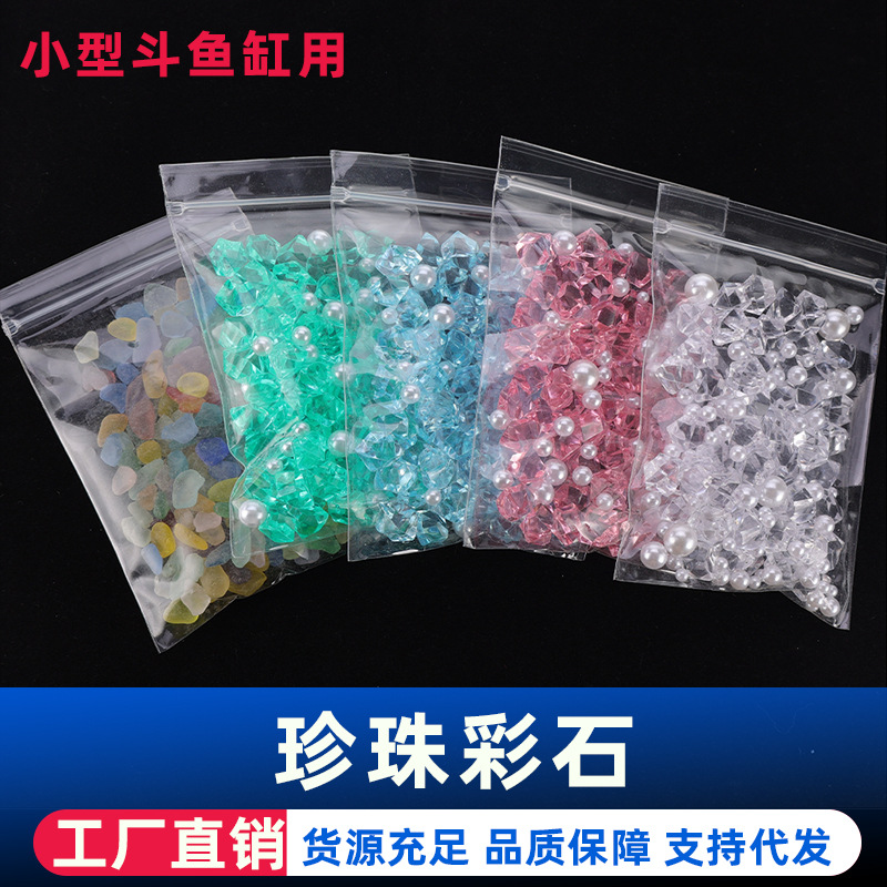 • 珍珠彩石斗鱼缸造景装饰亚克力塑料珍珠水晶彩石小鱼缸造景底砂