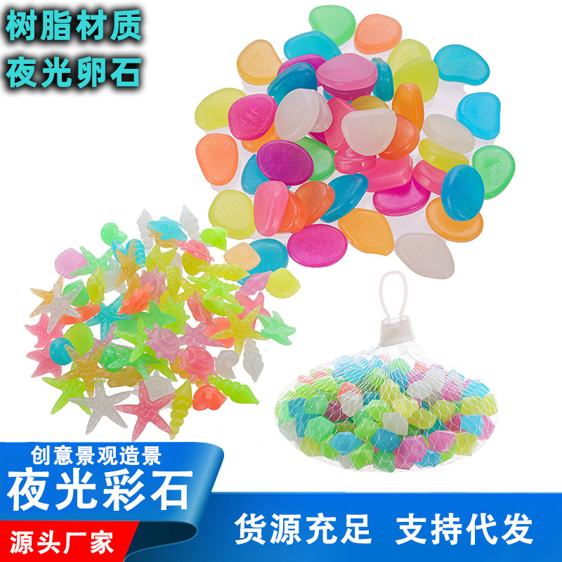 • 夜光石树脂塑料荧光鹅卵石鱼缸造景装饰石子夜光海星贝壳批发