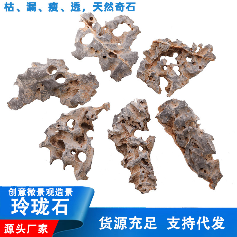 • 天然玲珑石水族箱小鱼缸造景石山东特产微景观镂空奇石摆件原石
