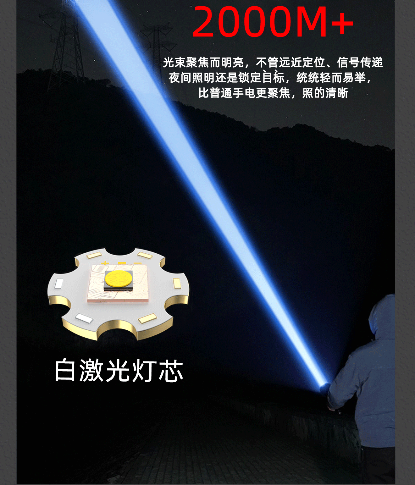 뉴 화이트 레이저 손전등 충전식 옥외 비상 홍수 제어 서치라이트 P70 장거리 가정용 조명