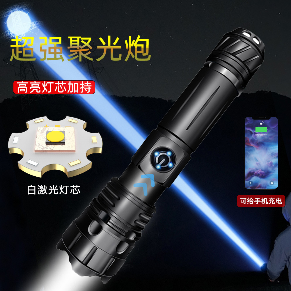 뉴 화이트 레이저 손전등 충전식 옥외 비상 홍수 제어 서치라이트 P70 장거리 가정용 조명스토어 가기