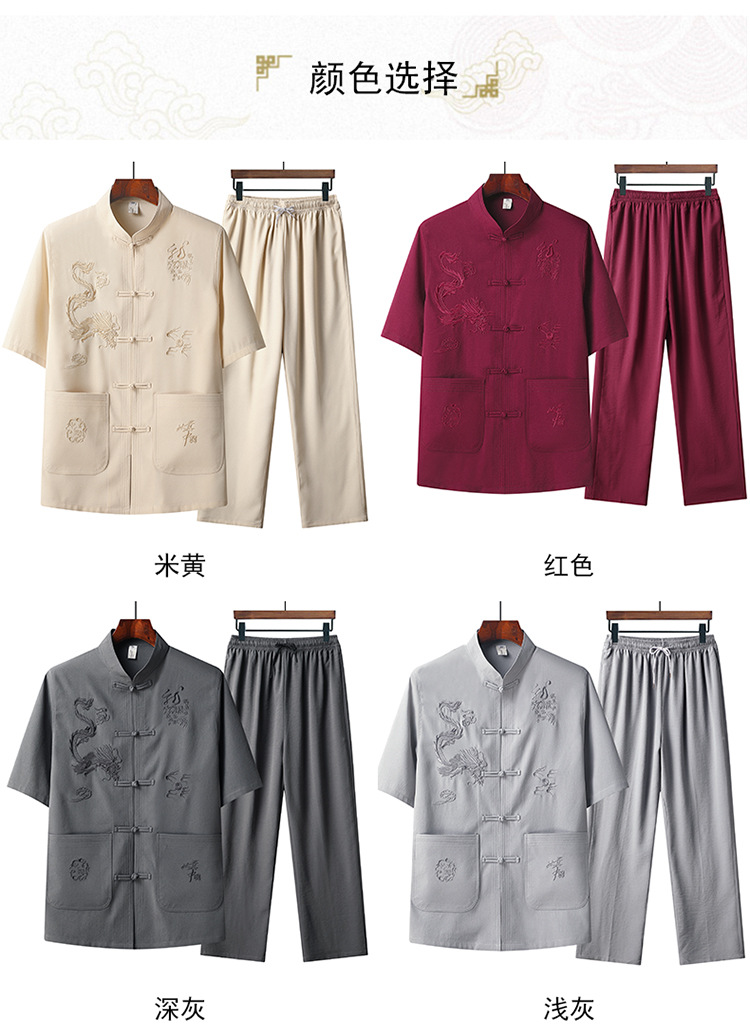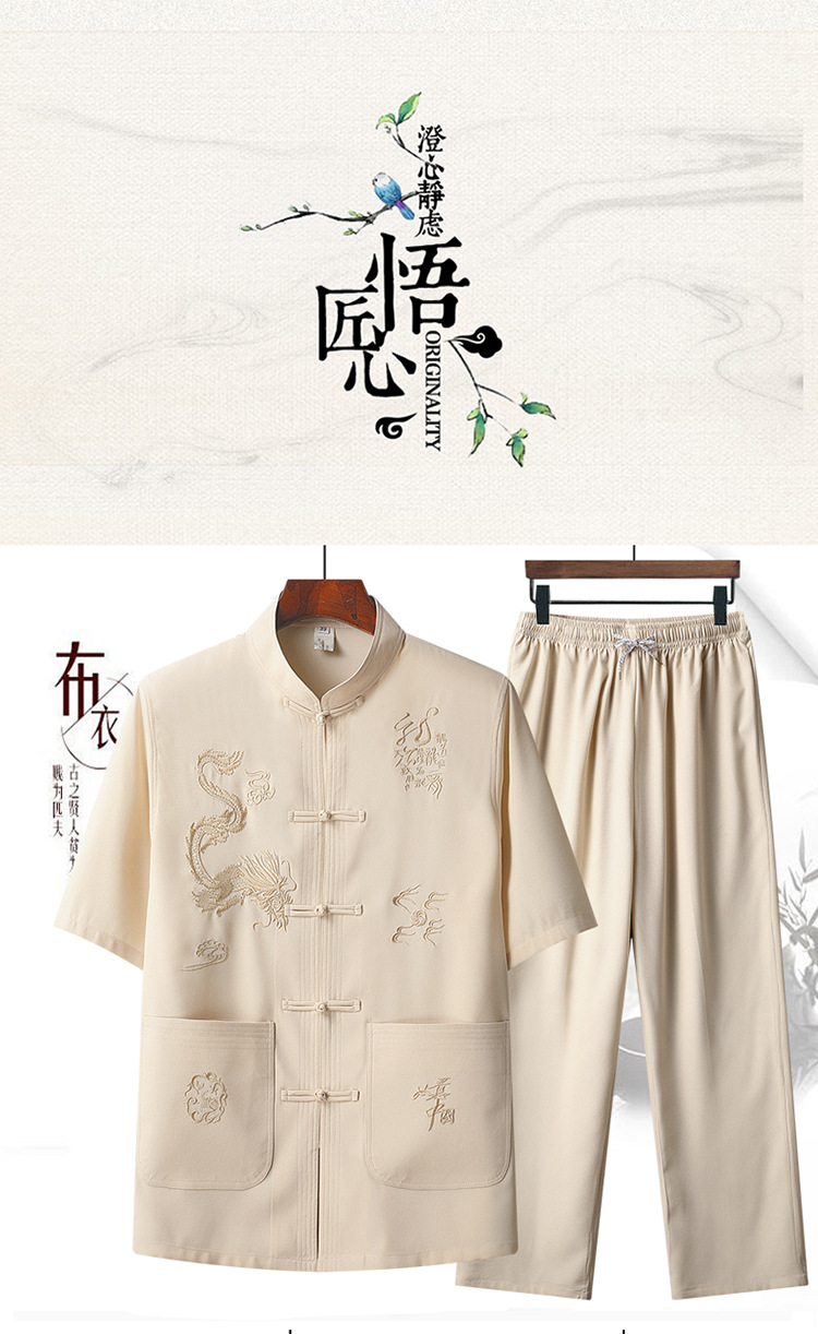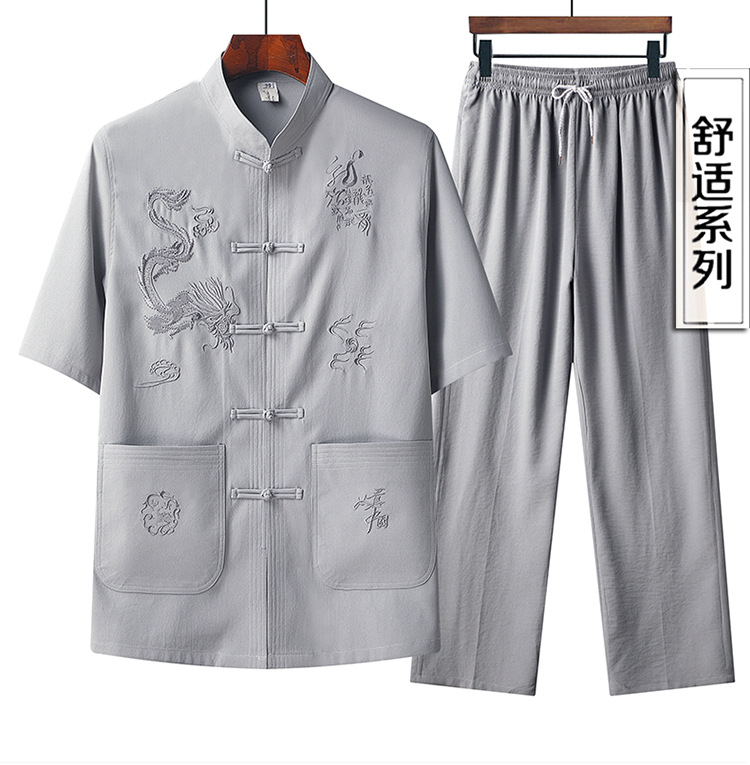 새로운 스타일 당나라 의류 여름 남자의 중년 및 노인 아빠 여름 의류 남자의 노인 중국 스타일 할아버지 반팔 셔츠 세트스토어 가기