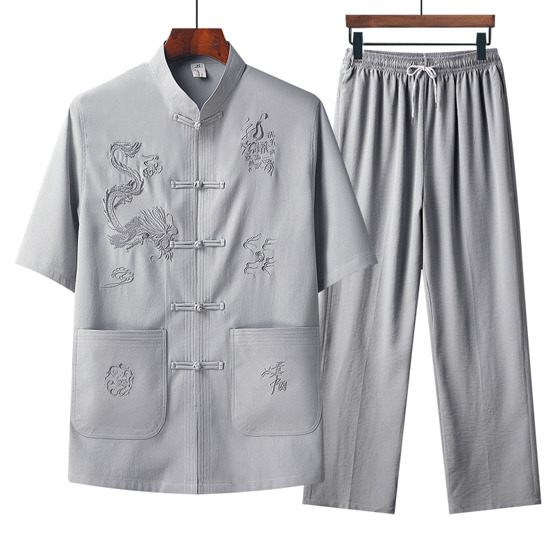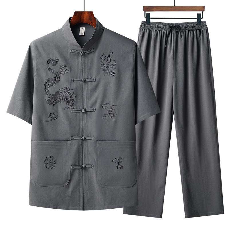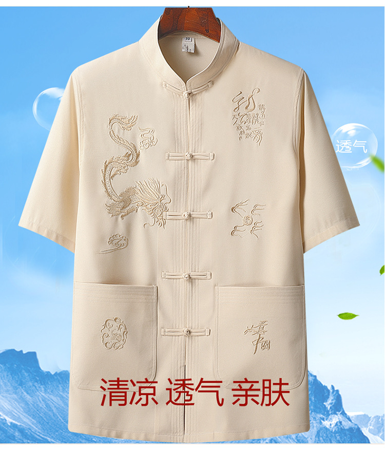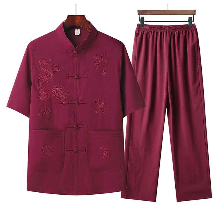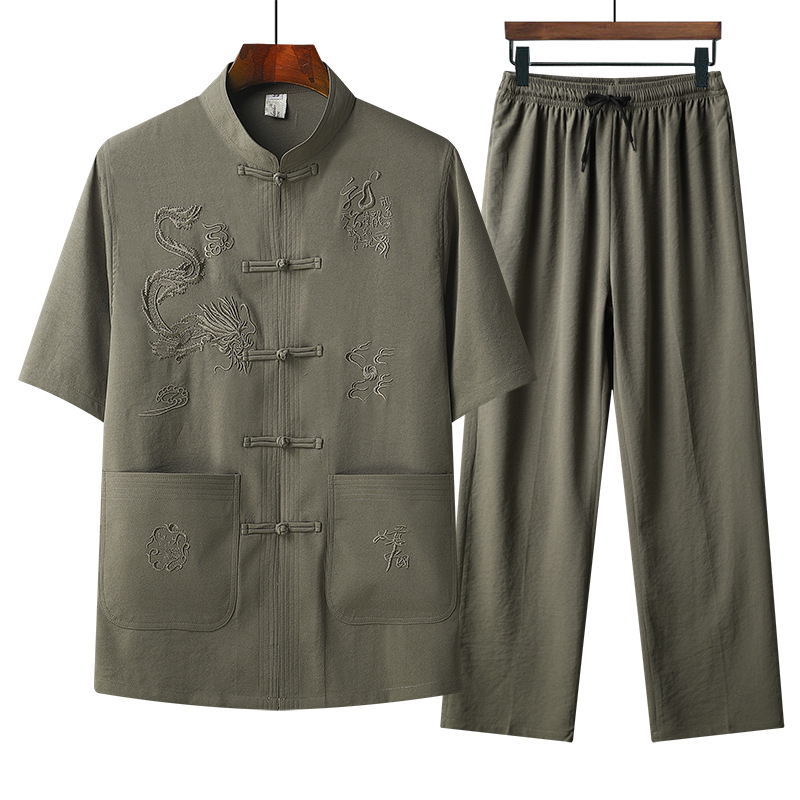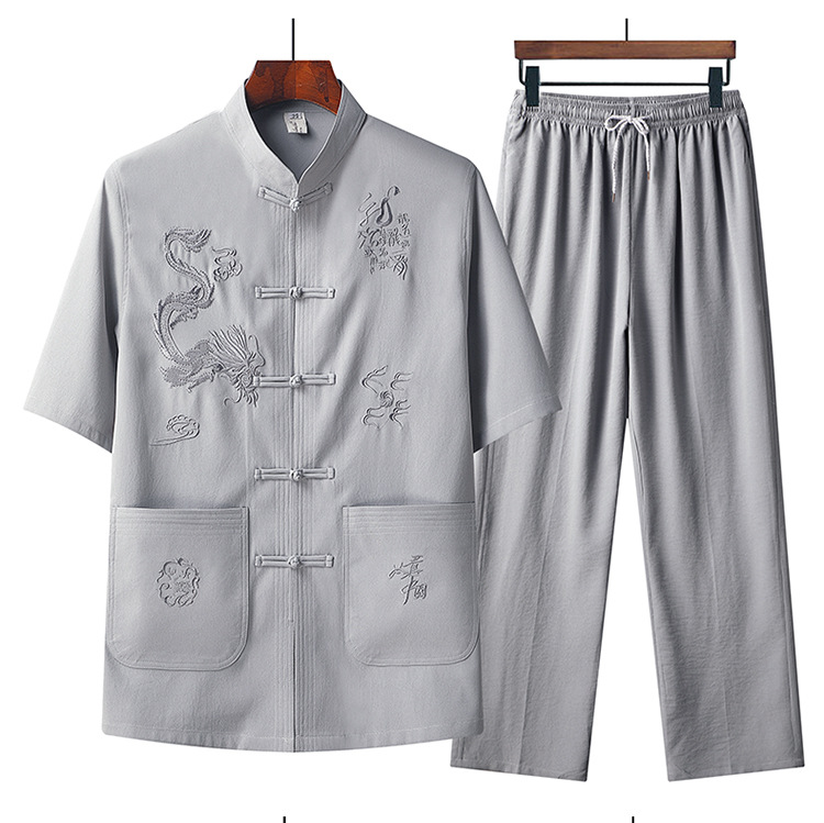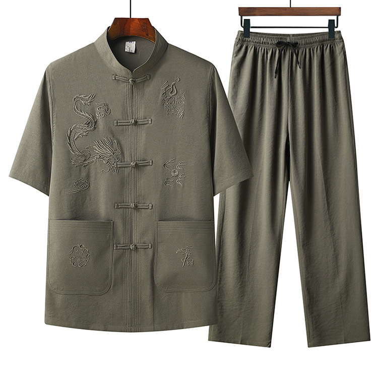 새로운 스타일 당나라 의류 여름 남자의 중년 및 노인 아빠 여름 의류 남자의 노인 중국 스타일 할아버지 반팔 셔츠 세트