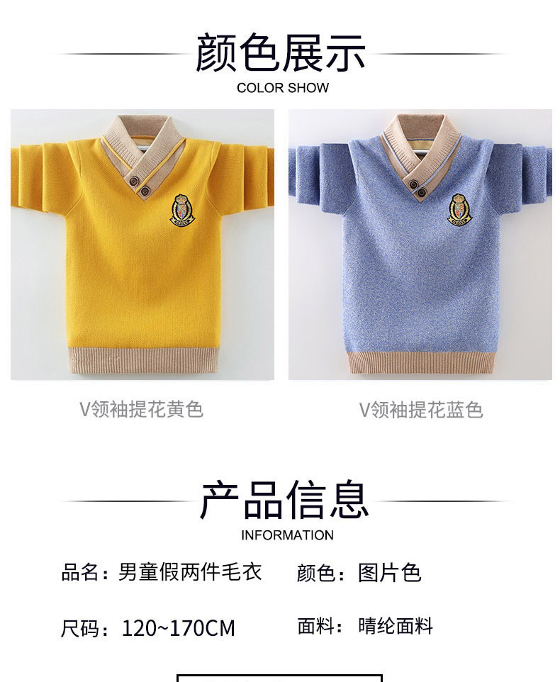 남아 스웨터 가을과 겨울 2023 새로운 어린이 가짜 투피스 기모 두꺼운 니트 아동복 유행 풀오버스토어 가기