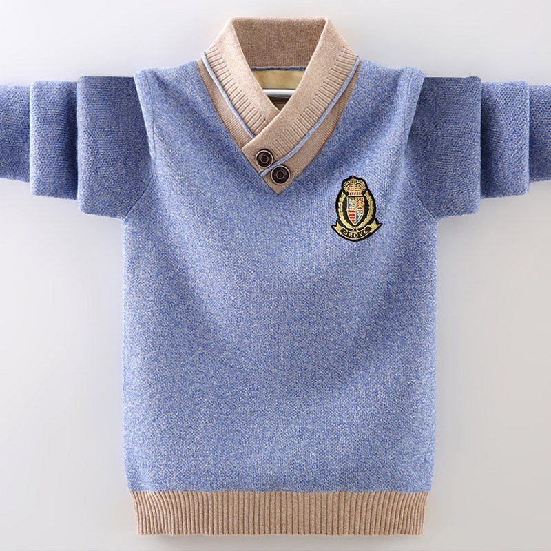 남아 스웨터 가을과 겨울 2023 새로운 어린이 가짜 투피스 기모 두꺼운 니트 아동복 유행 풀오버