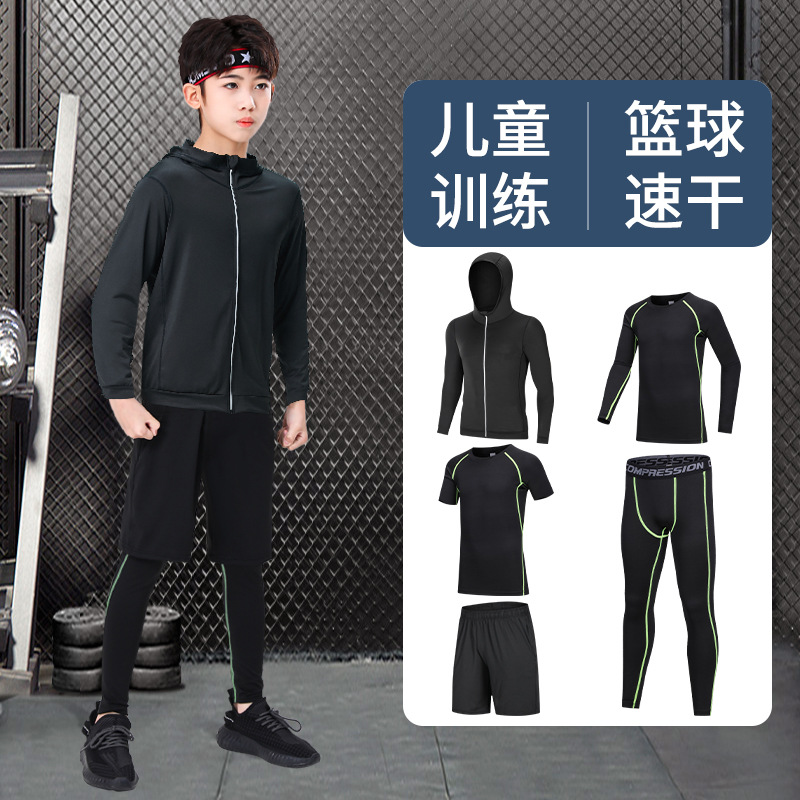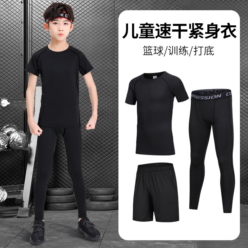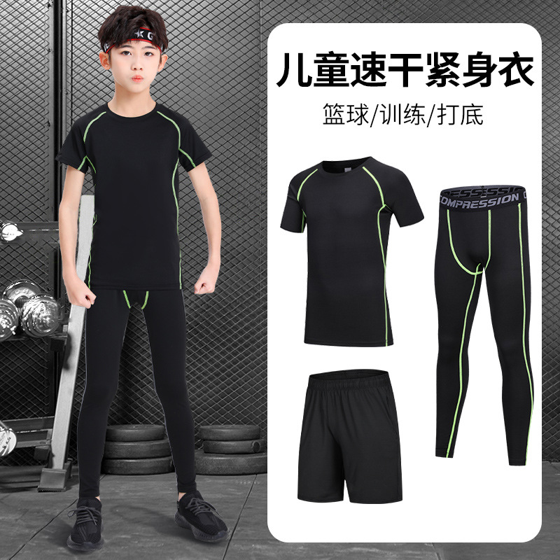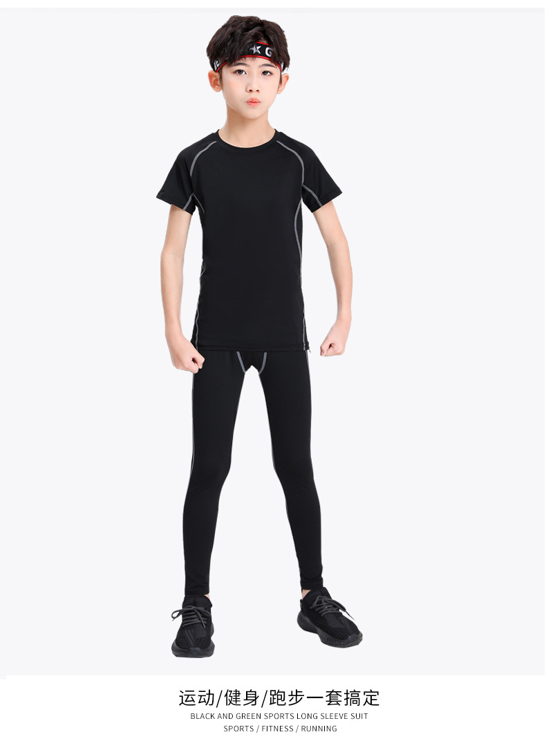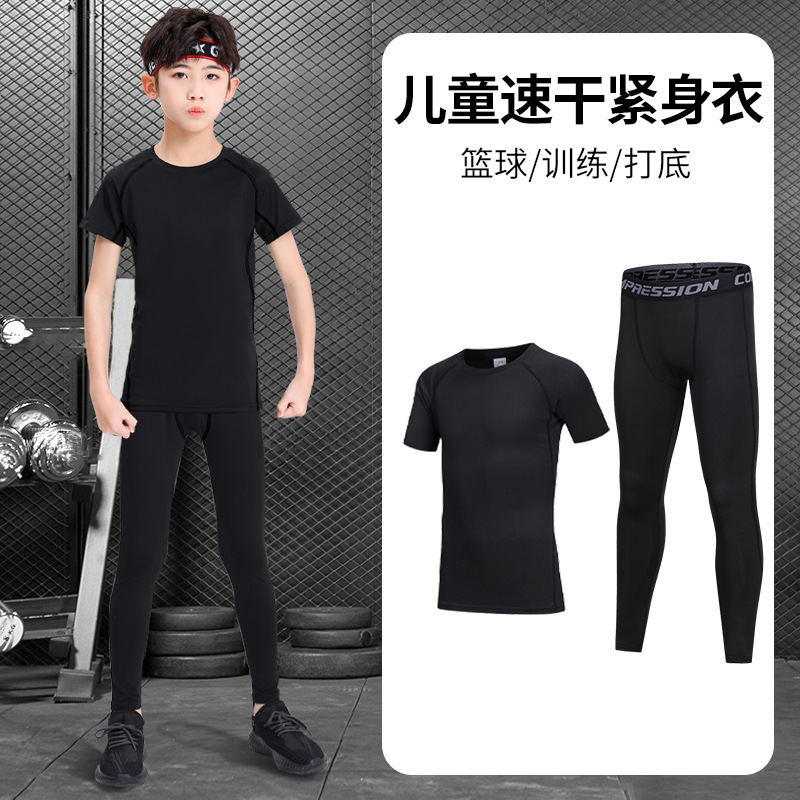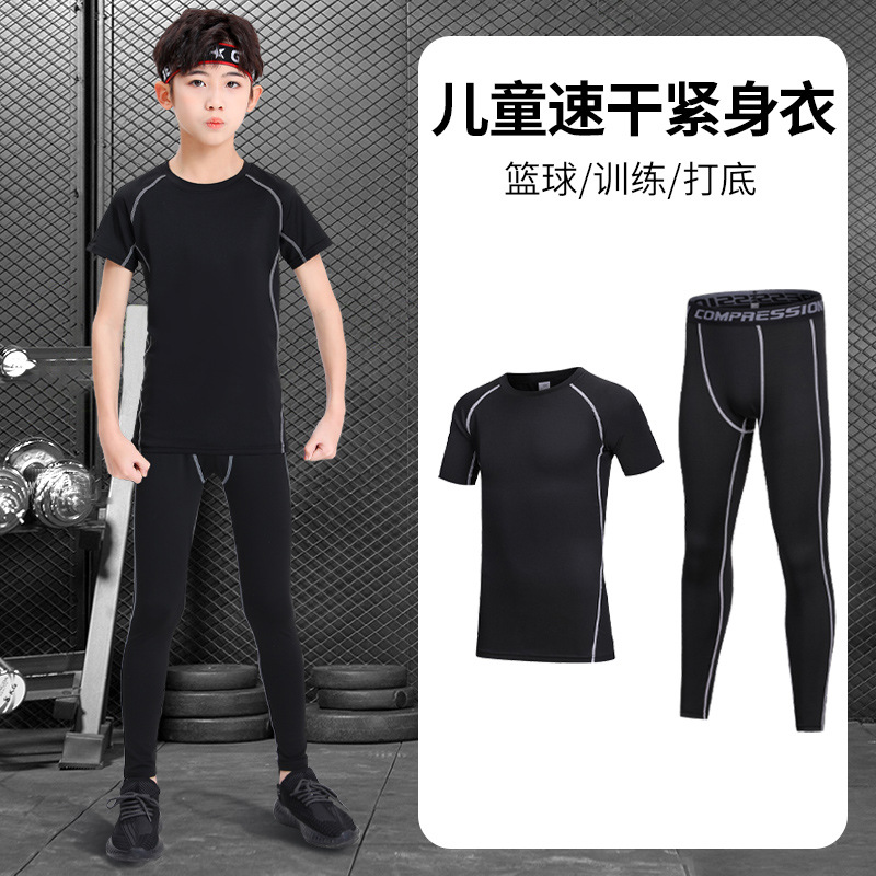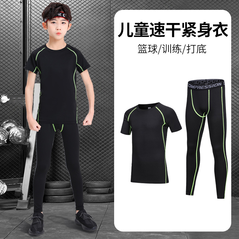 어린이 스타킹 훈련 옷 반팔 농구 속건 스포츠 세트 소년 피트니스 의류 봄 여름 가을 축구