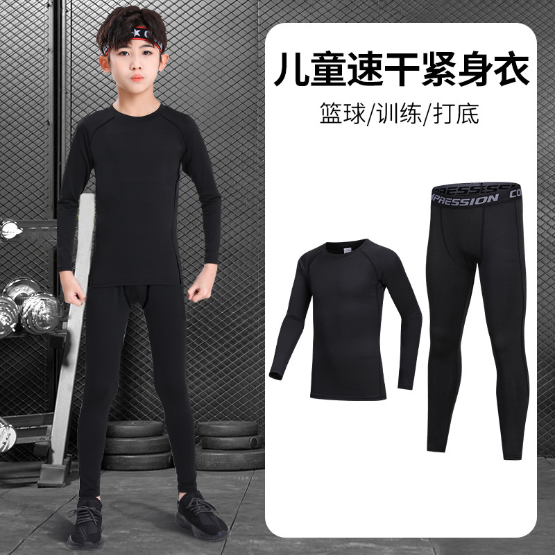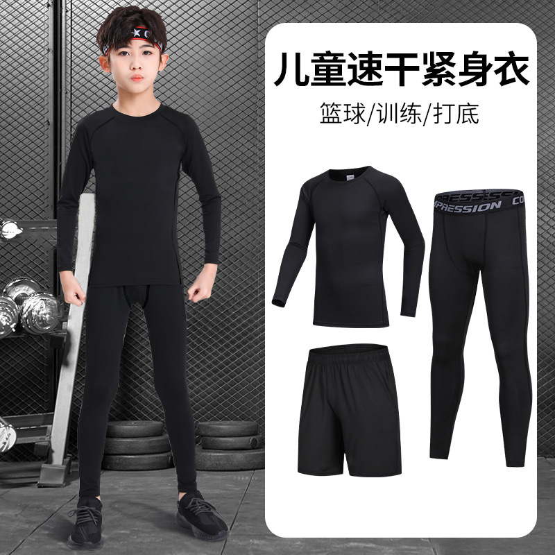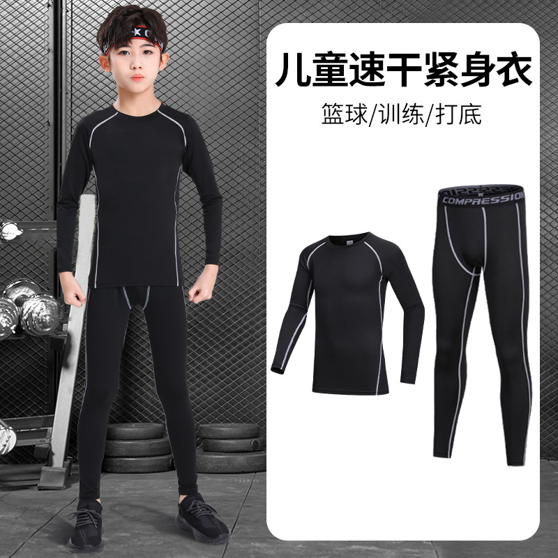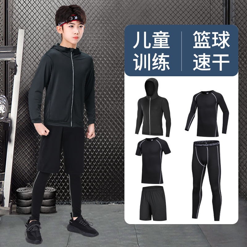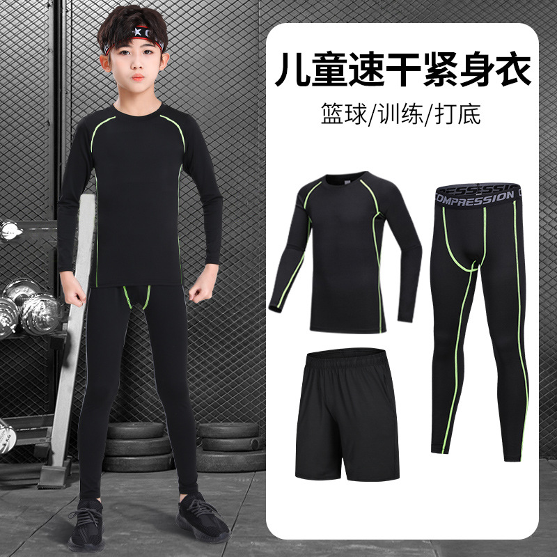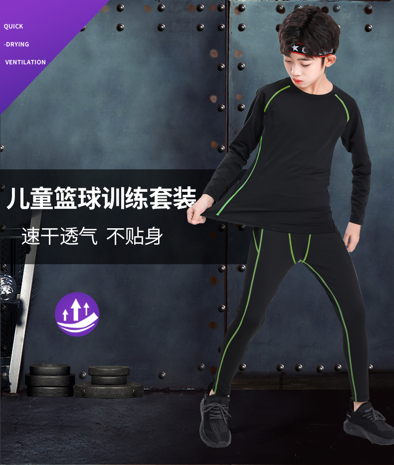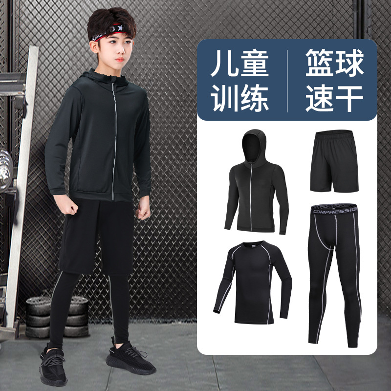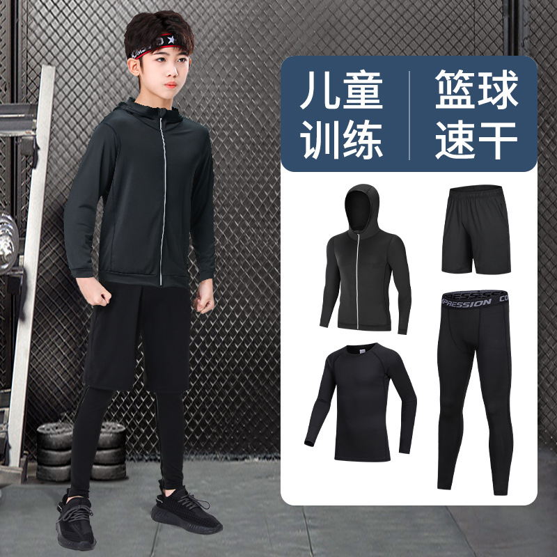 어린이 스타킹 훈련 옷 반팔 농구 속건 스포츠 세트 소년 피트니스 의류 봄 여름 가을 축구