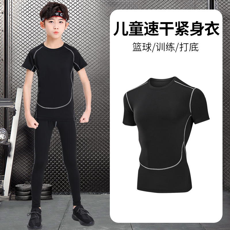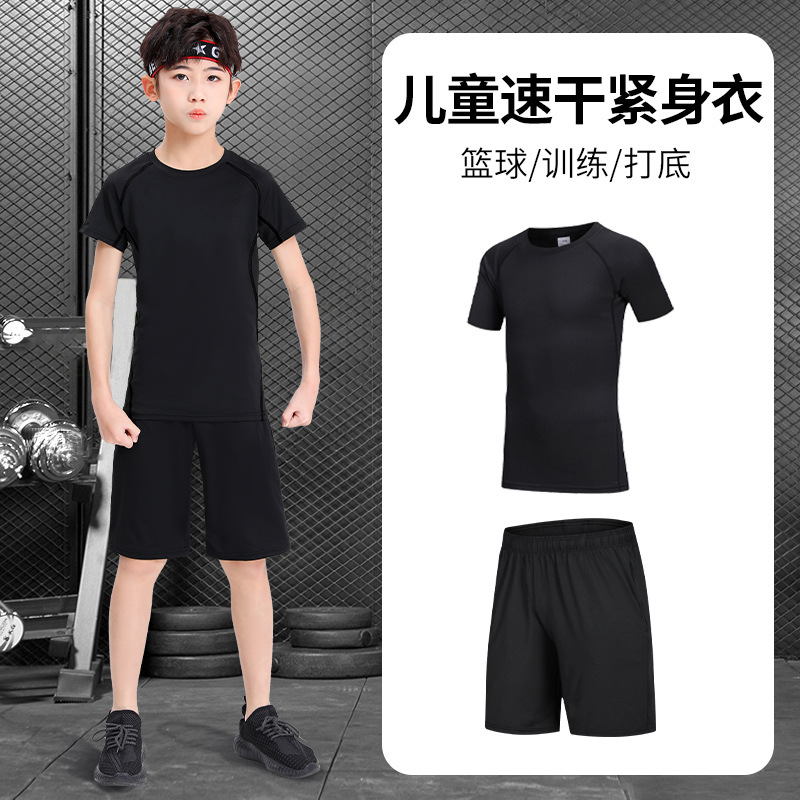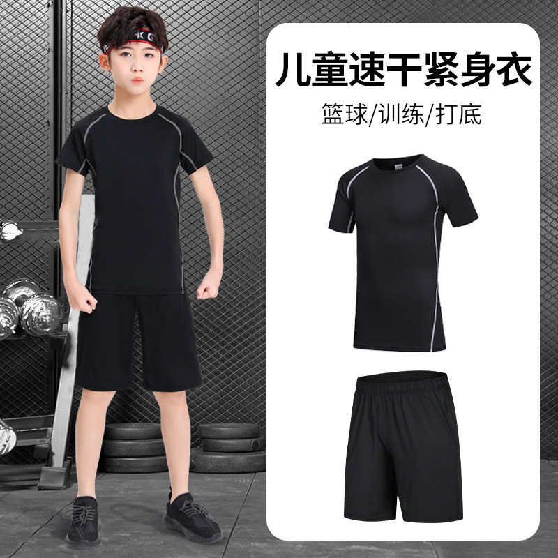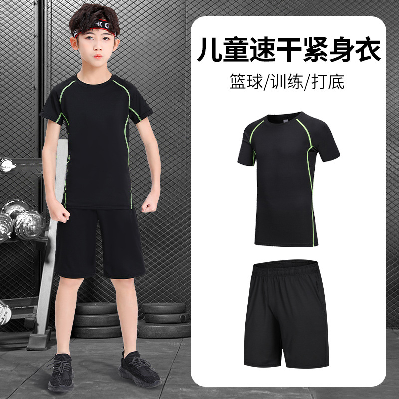 어린이 스타킹 훈련 옷 반팔 농구 속건 스포츠 세트 소년 피트니스 의류 봄 여름 가을 축구스토어 가기