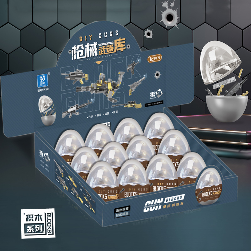 새로운 꼬인 계란 조립 총기 DIY 두뇌 이동 호환 레고 빌딩 블록 작은 입자 12-in-1 권총 어린이 장난감스토어 가기