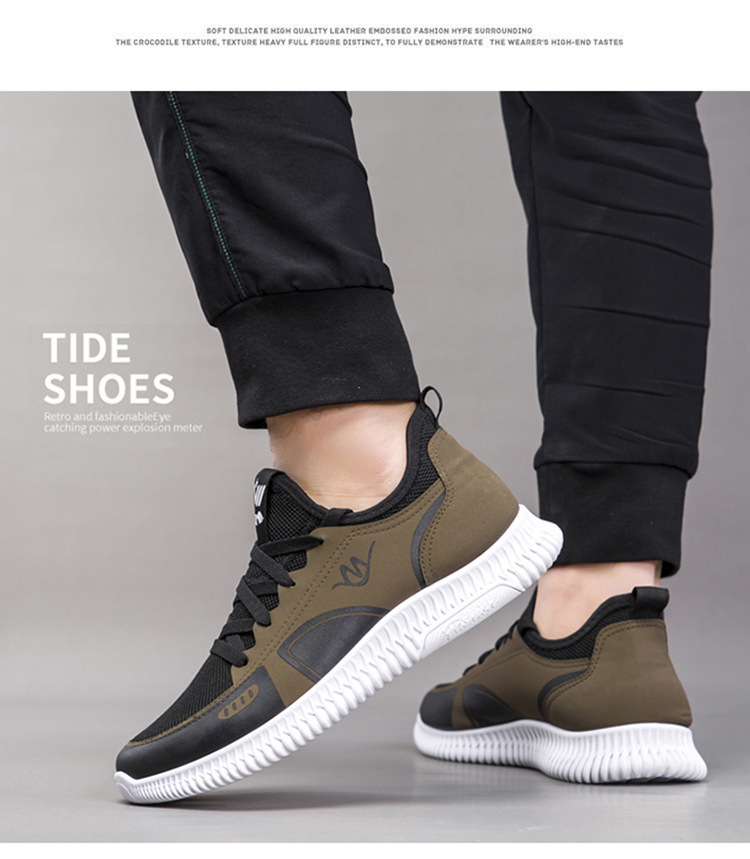 남자의 봄 신상품 러닝화 유행 한국 스타일 비행 짠 통기성 캐주얼 신발 가벼운 편안한 운동화 남성 신발