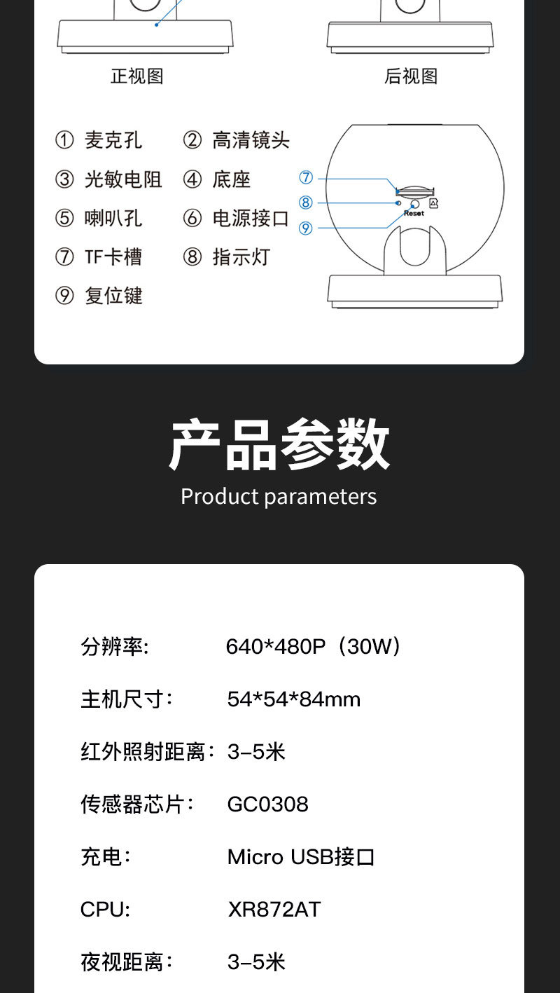 A2 무선 와이파이 카메라 홈 보안 감시 360 회전 카메라 실내 원격 야간 투시 카메라