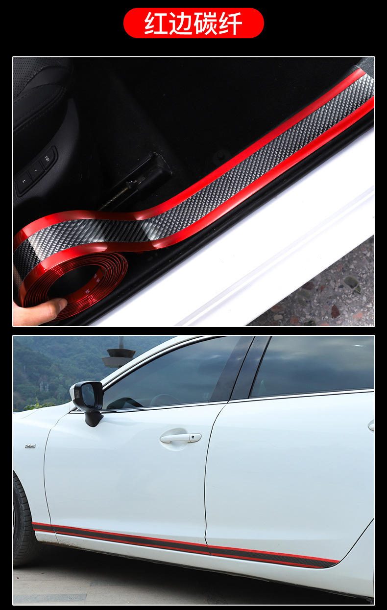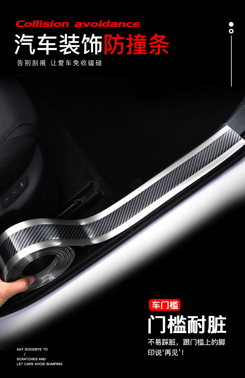 자동차 창틀 스트립 용 스테핑 방지 스티커 범용 수정 페달 트림 스트립 탄소 섬유 곡물 범퍼 도어 에지 충돌 방지 스티커
