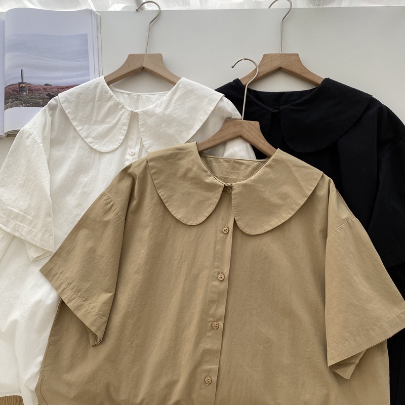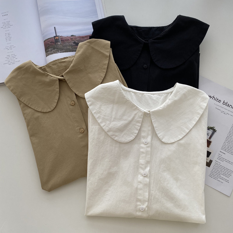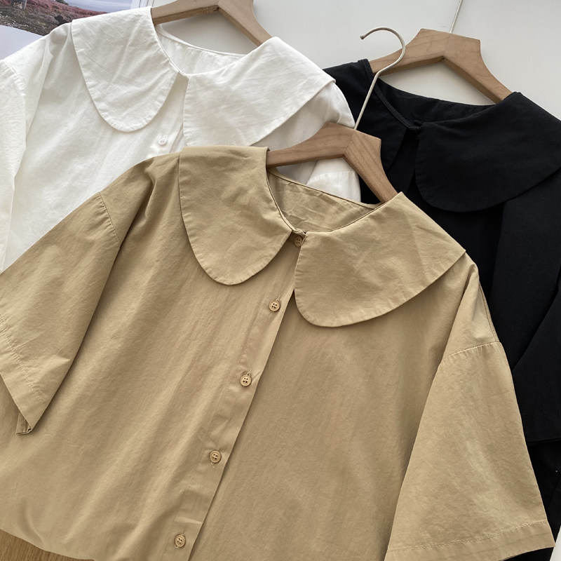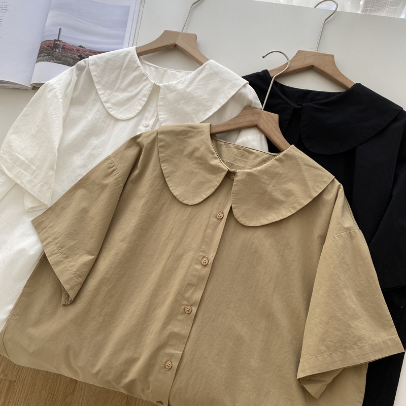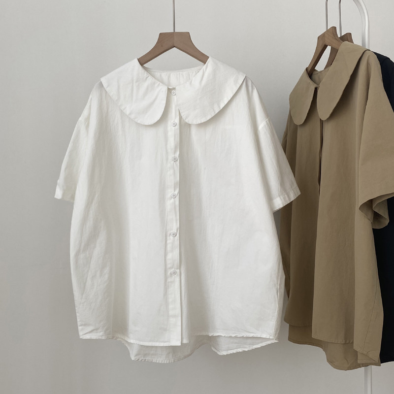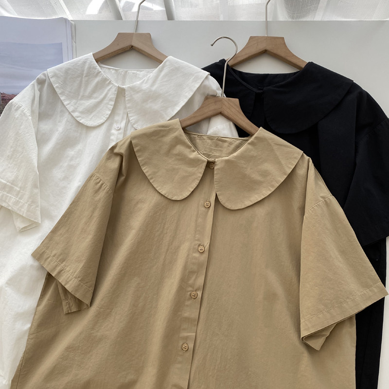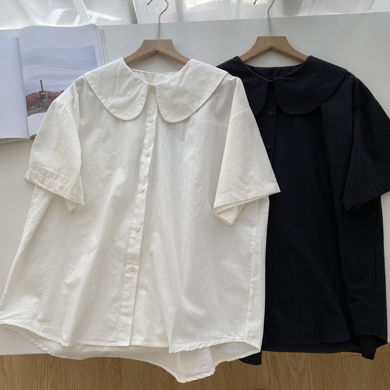 빈티지 일본 나이 감소 인형 칼라 화이트 셔츠 여성용 면 여름 새로운 한국 스타일 루즈한 탑스토어 가기