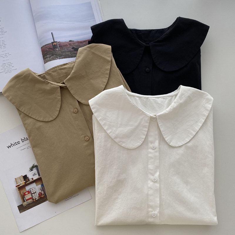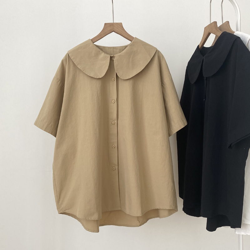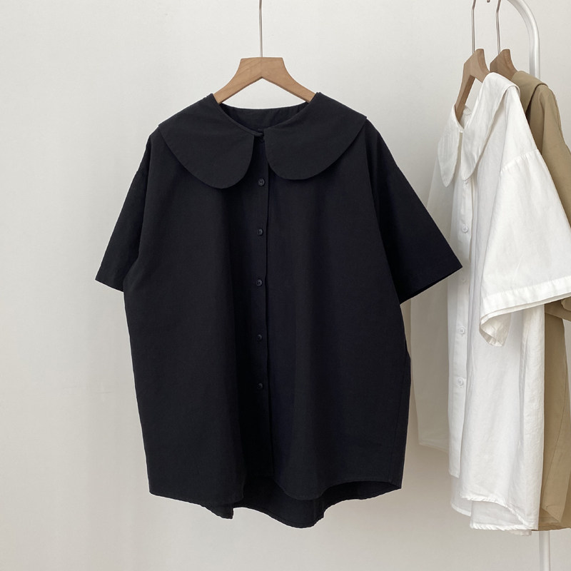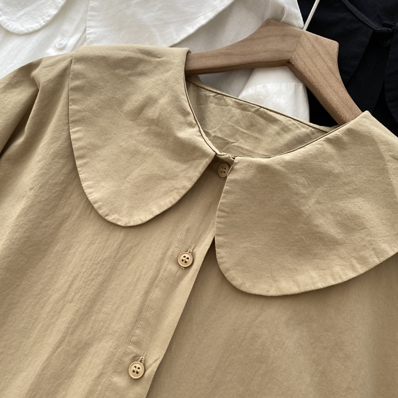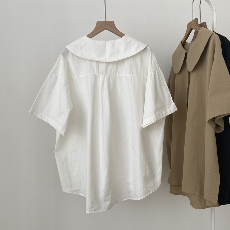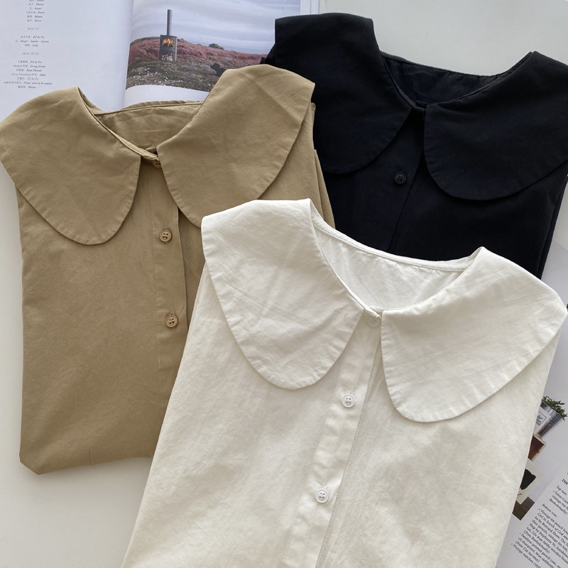 빈티지 일본 나이 감소 인형 칼라 화이트 셔츠 여성용 면 여름 새로운 한국 스타일 루즈한 탑스토어 가기