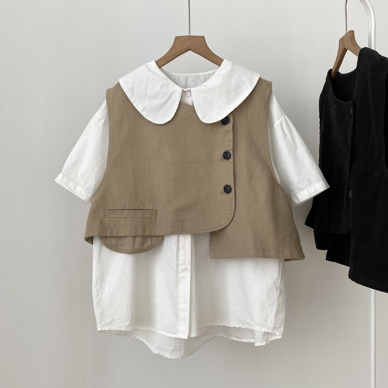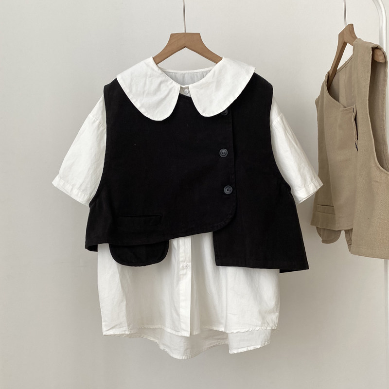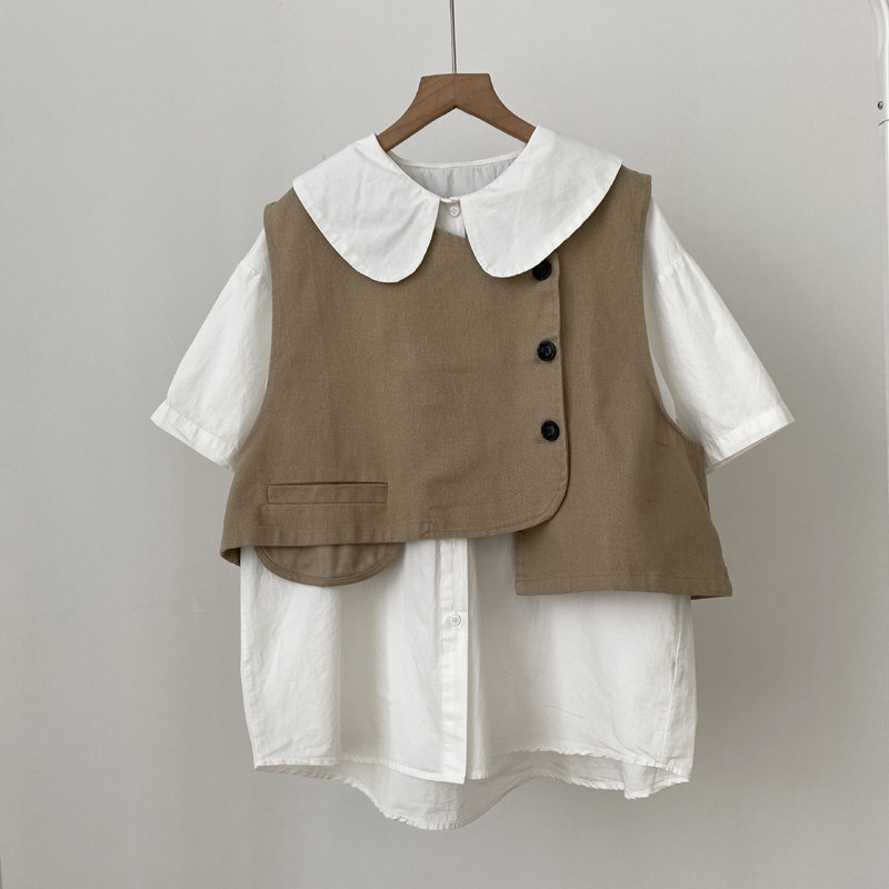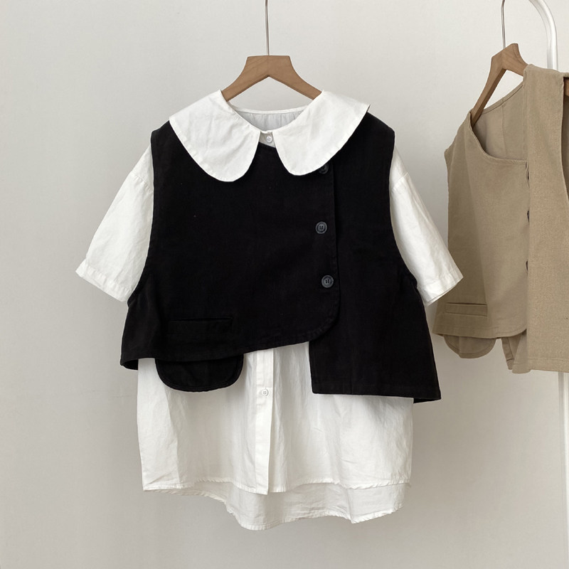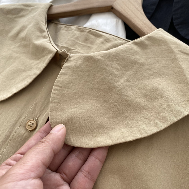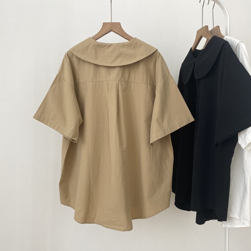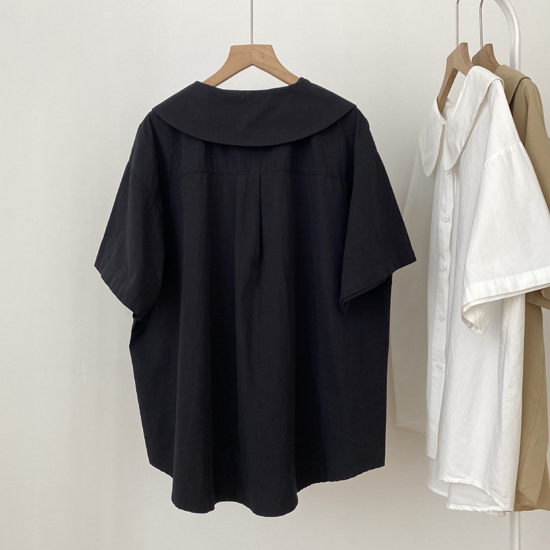 빈티지 일본 나이 감소 인형 칼라 화이트 셔츠 여성용 면 여름 새로운 한국 스타일 루즈한 탑스토어 가기