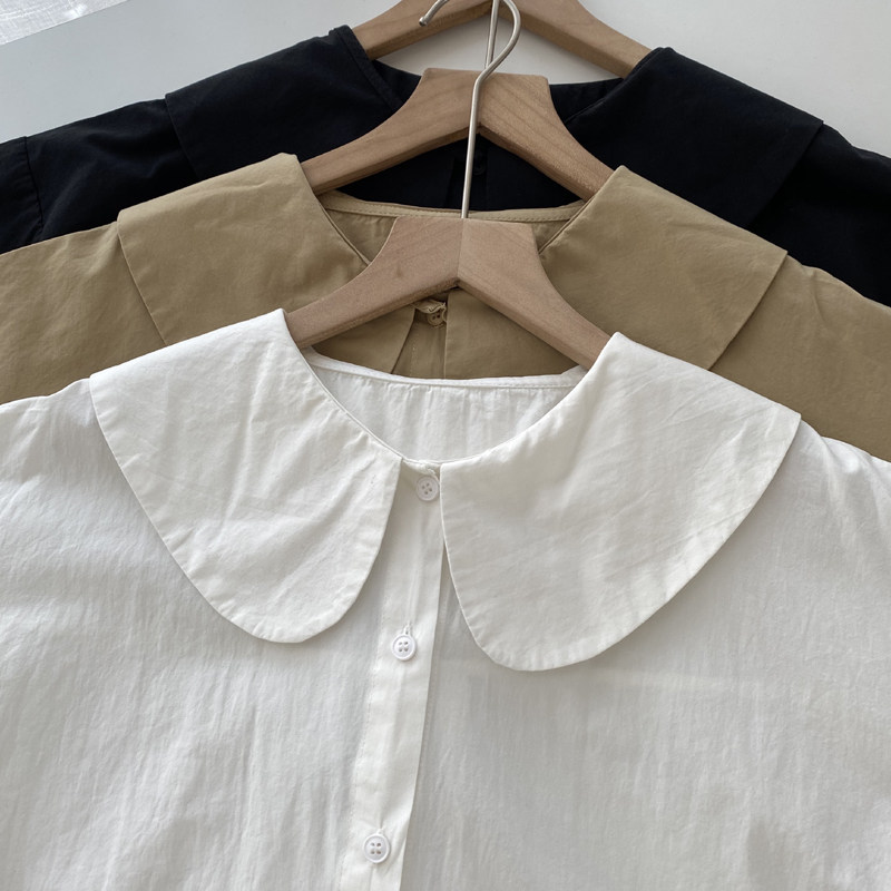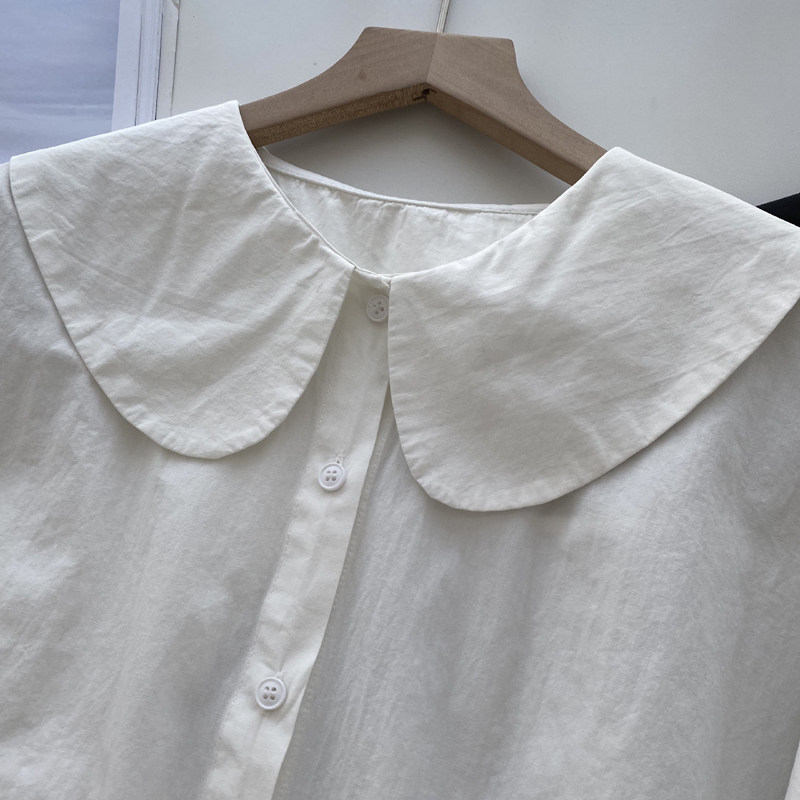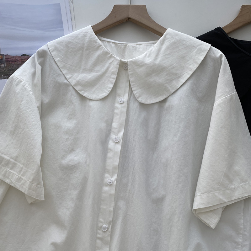 빈티지 일본 나이 감소 인형 칼라 화이트 셔츠 여성용 면 여름 새로운 한국 스타일 루즈한 탑