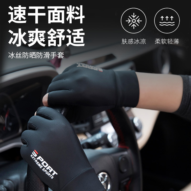 여름 선 스크린 장갑 얇은 남성용 아이스 실크 야외 운전 승마 Luya 누출 두 손가락 낚시 장갑스토어 가기